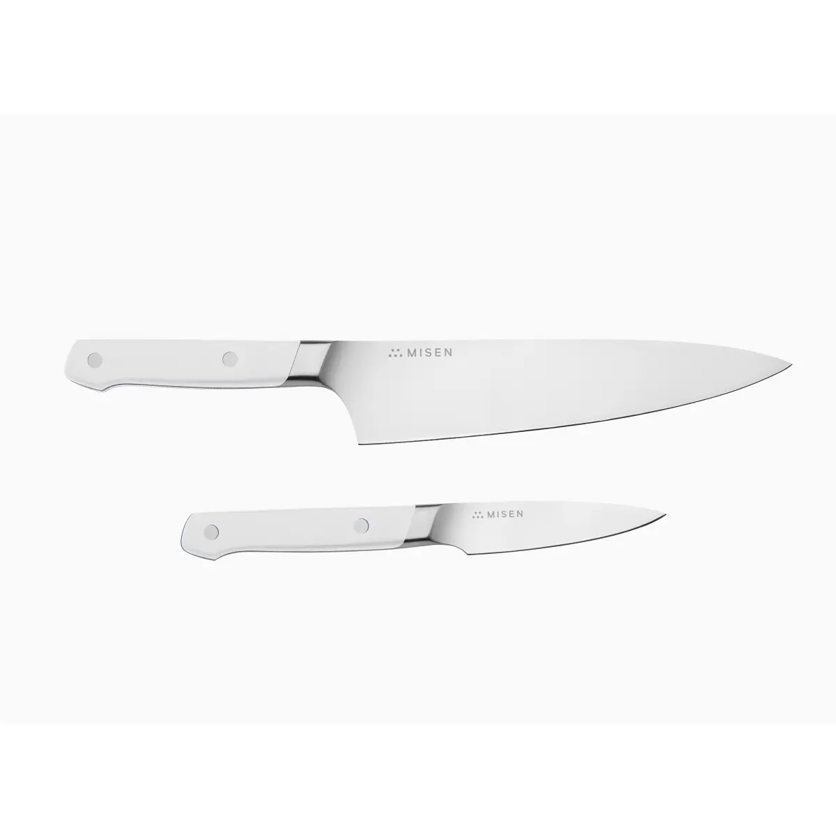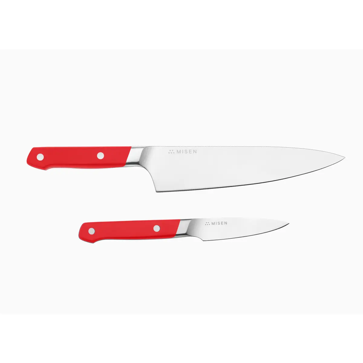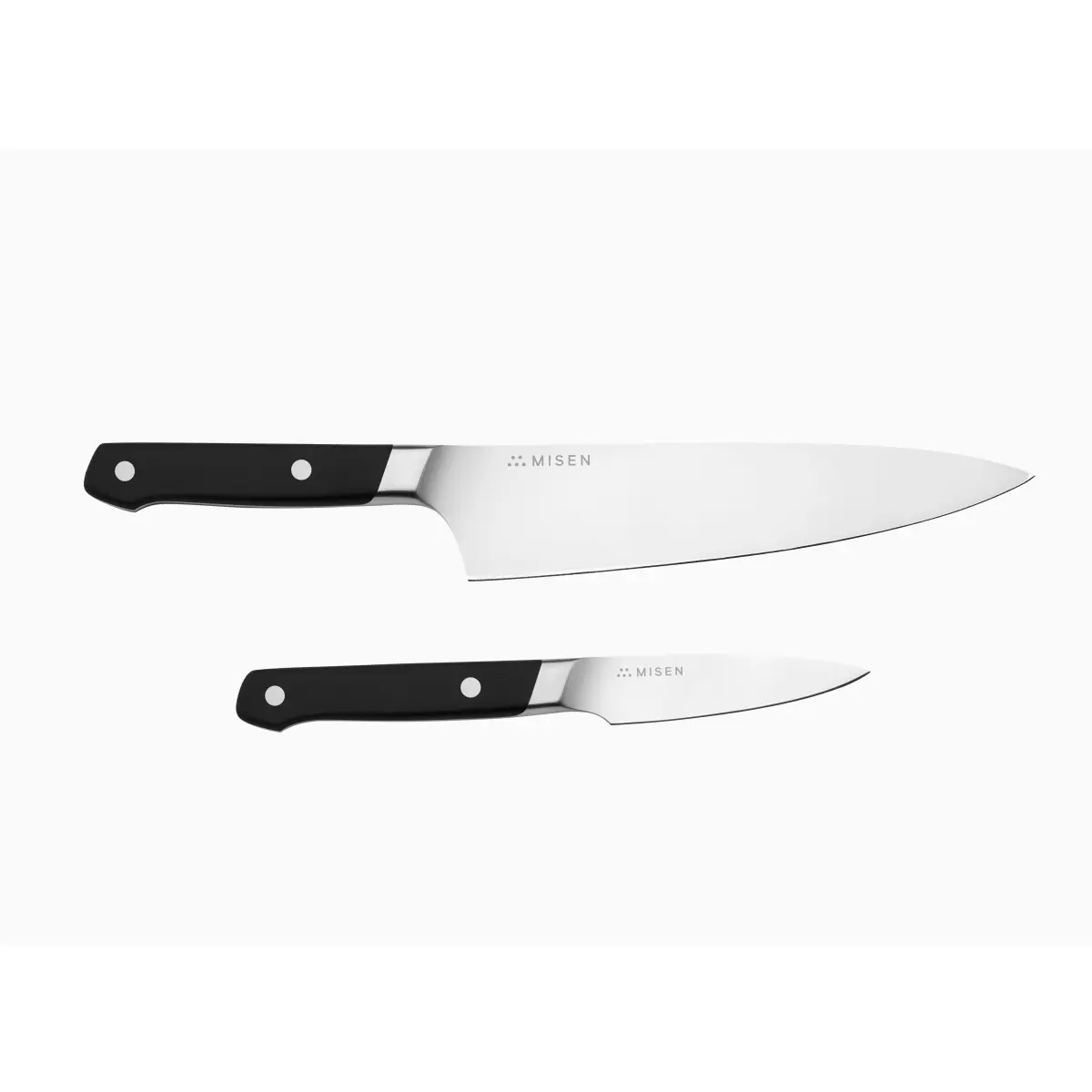 I love both of these knives. The chef's knife has good heft and both are very sharp. My experience with the Misen utility knife is that these are easy to keep sharp.