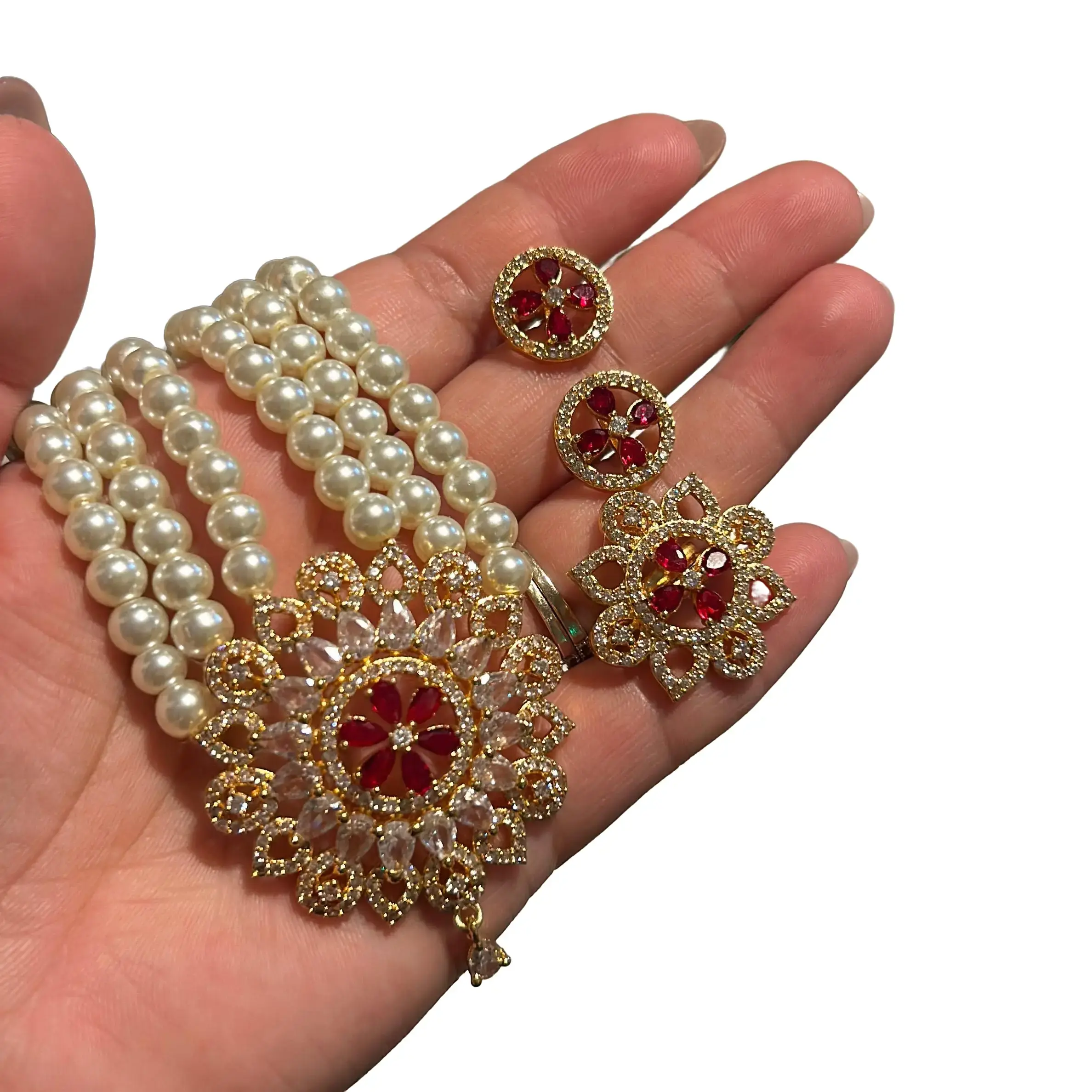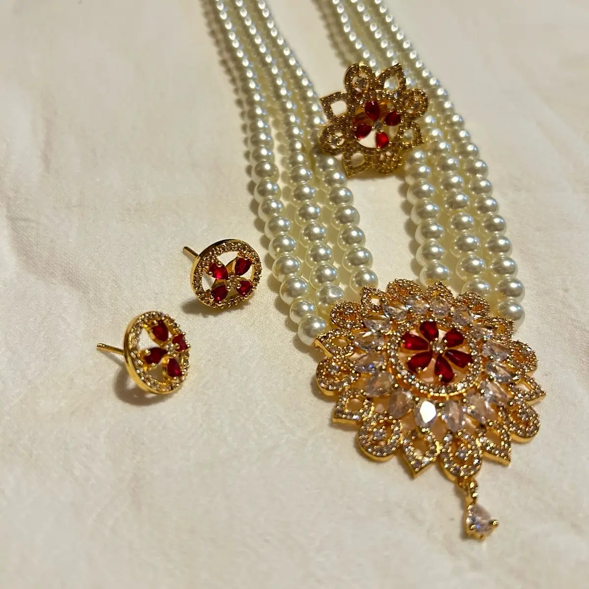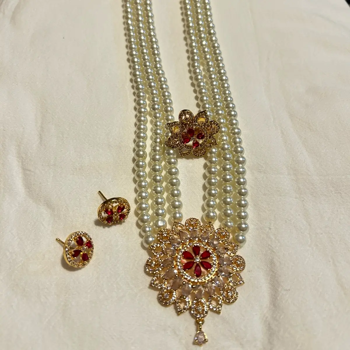 Moti Mala with Earrings and Ring - Traditional Indian Jewelry Set