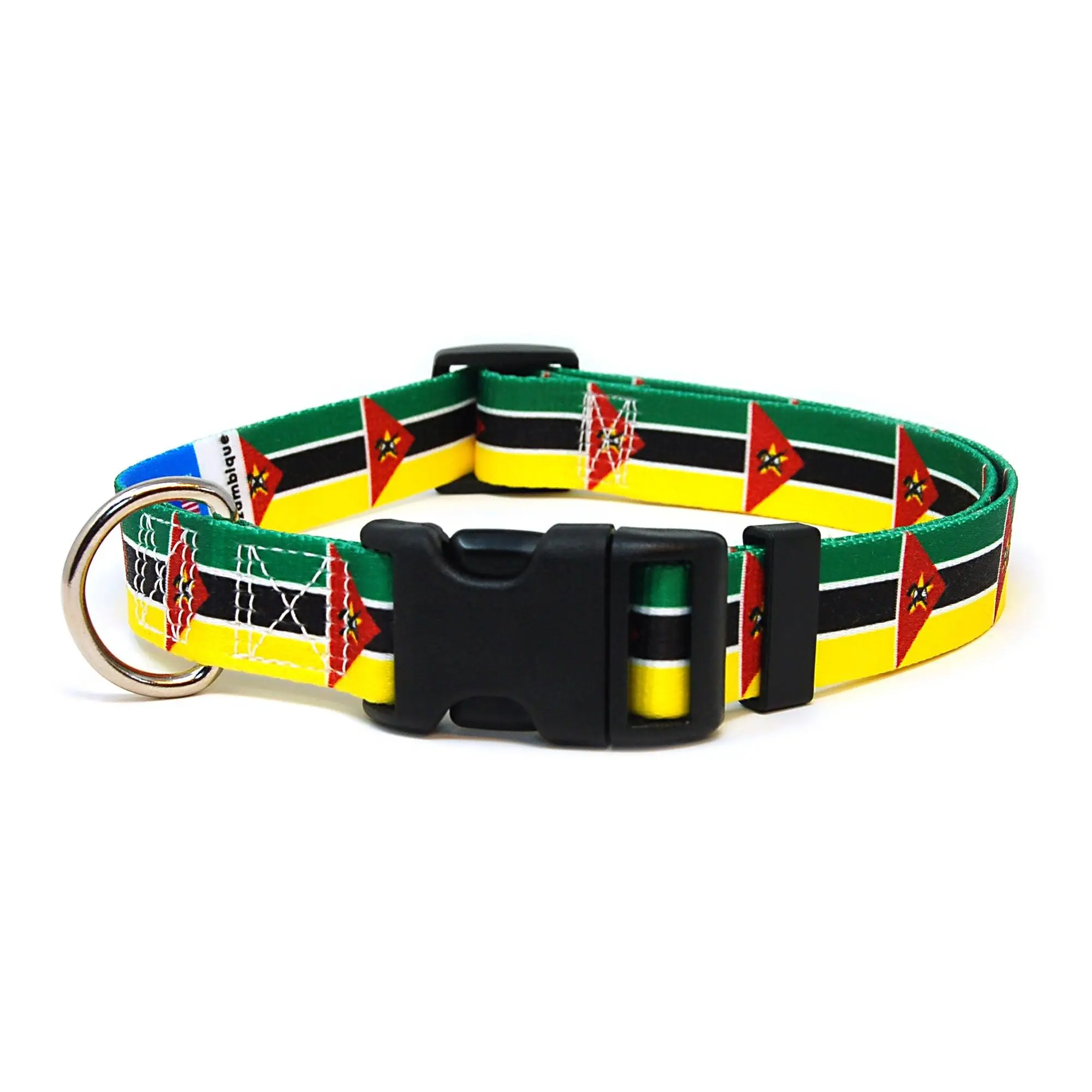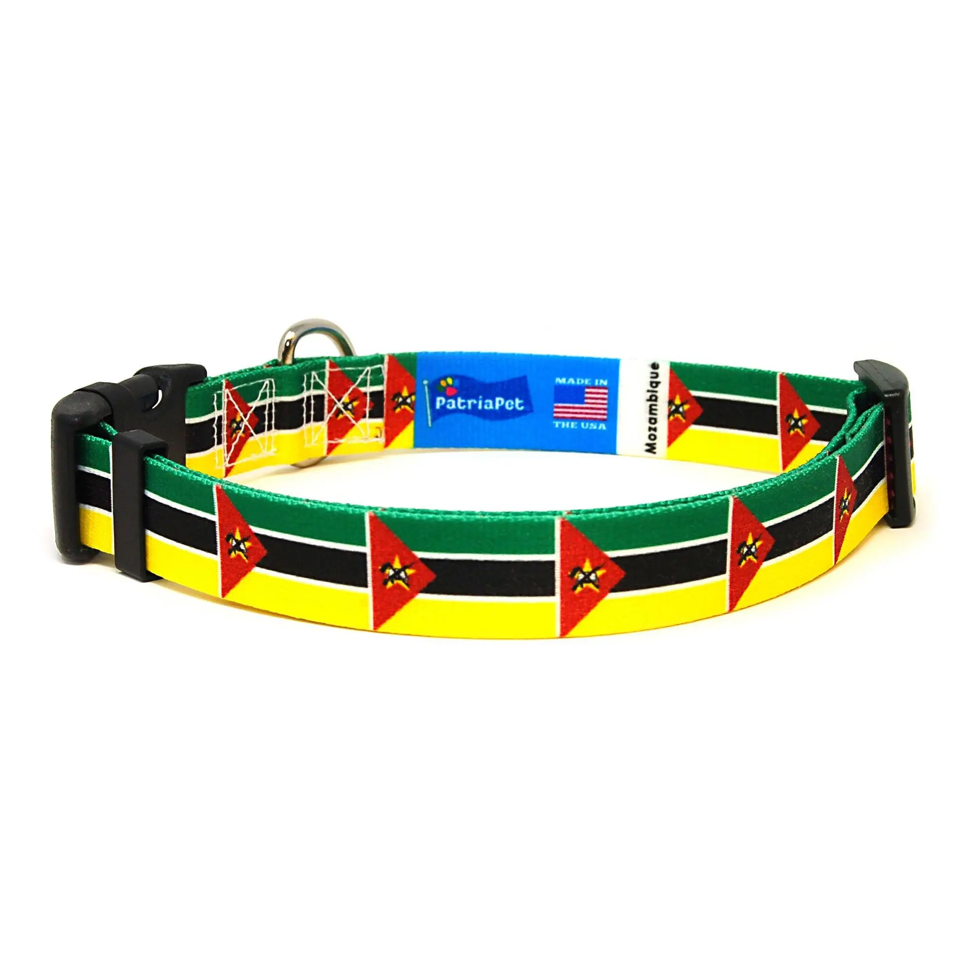 Do you or your pup have a special connection to the country or people of Mozambique? Awesome! This collar is a wonderful way to share that pride with your favorite furry pal. In a fun and unique way, it celebrates your joy about Mozambique, or perhaps the origin of your pup. They are well-built, USA-made collars rugged enough for everyday use. These hard-to-find collars make very special gifts too!