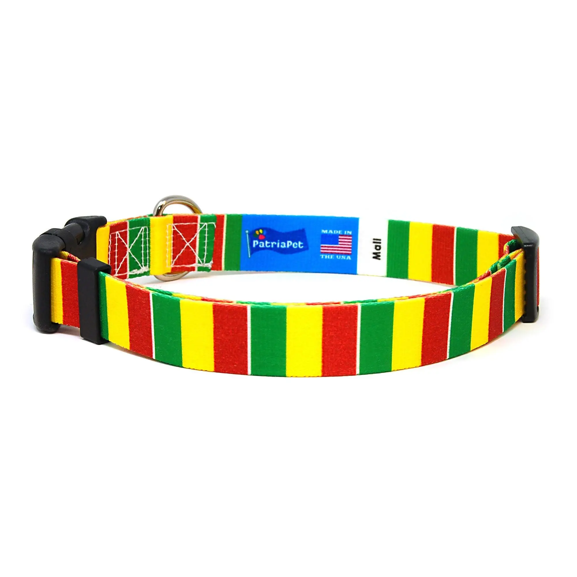 Do you or your pup have a special connection to the country or people of Mali? Awesome! This collar is a wonderful way to share that pride with your favorite furry pal. In a fun and unique way, it celebrates your joy about Mali, or perhaps the origin of your pup. They are well-built, USA-made collars rugged enough for everyday use. These hard-to-find collars make very special gifts too!