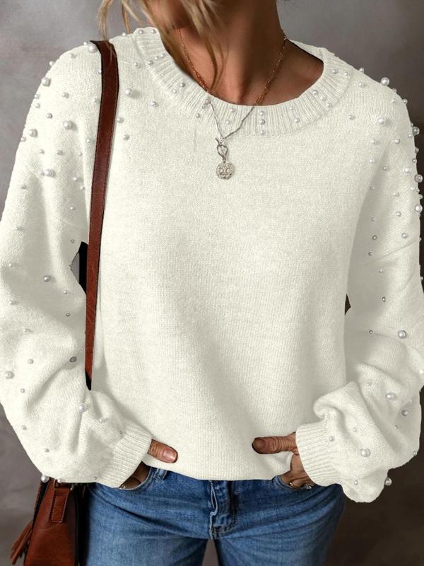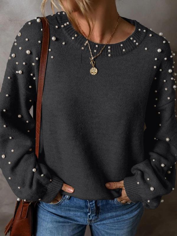 Soft sweater, pearls are pretty! Cute with jeans or black pants.