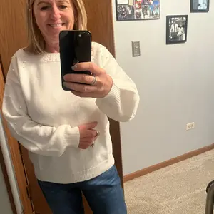 The sweater is so cute, but it has small holes in the sleeve, I believe it is a manufacturers defect because I got the blue one also and it is fine