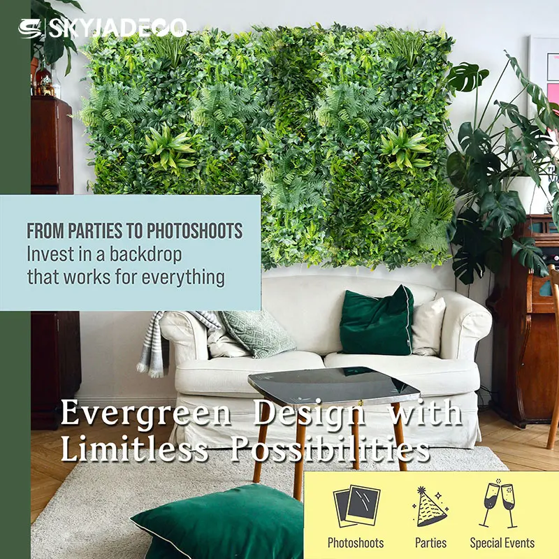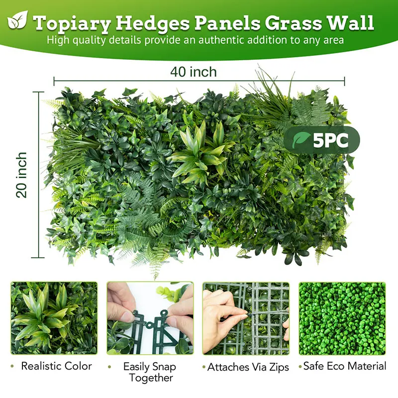 The 20" x 40" faux living wall panels are designed to provide a natural, realistic look, with multi-green plant leaves that mimic the look of real plants. Ideal for both indoor and outdoor use, these panels are made from high-quality materials to ensure their durability and longevity.