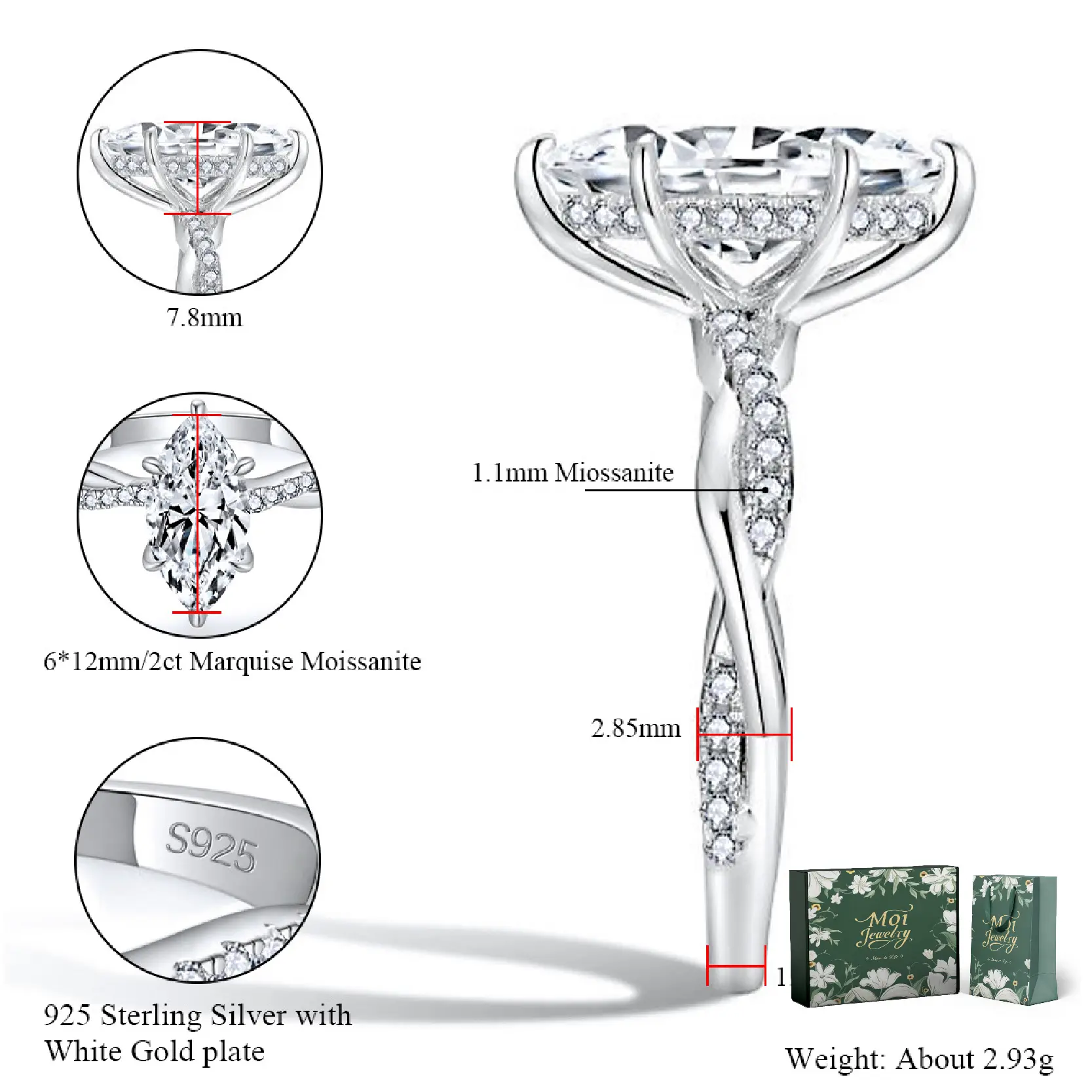 With 2CT Moissanite, US: 7.5