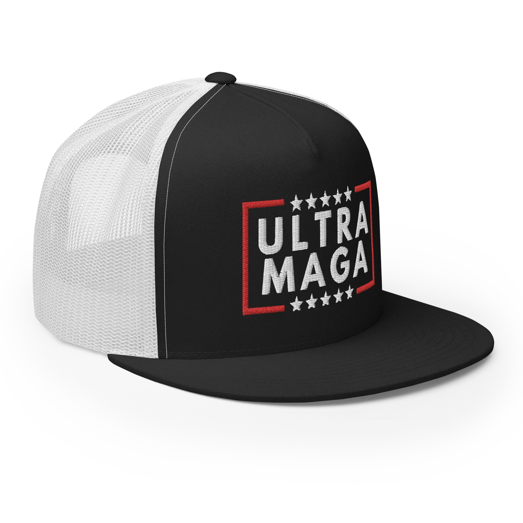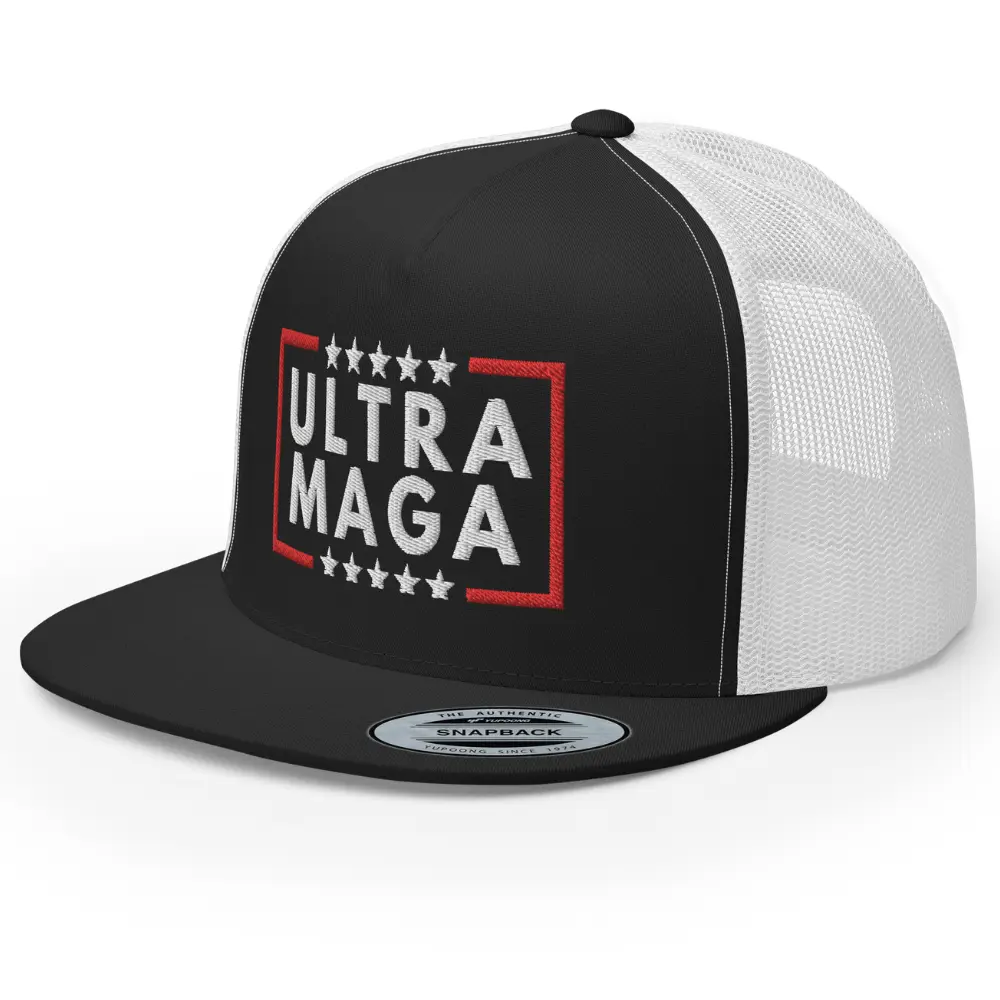 RIVEMUG SQ Ultra MAGA Embroidered Flat Bill Trucker Hat High Crown Adjustable Make America Great Again Trump Cap trump trucker
