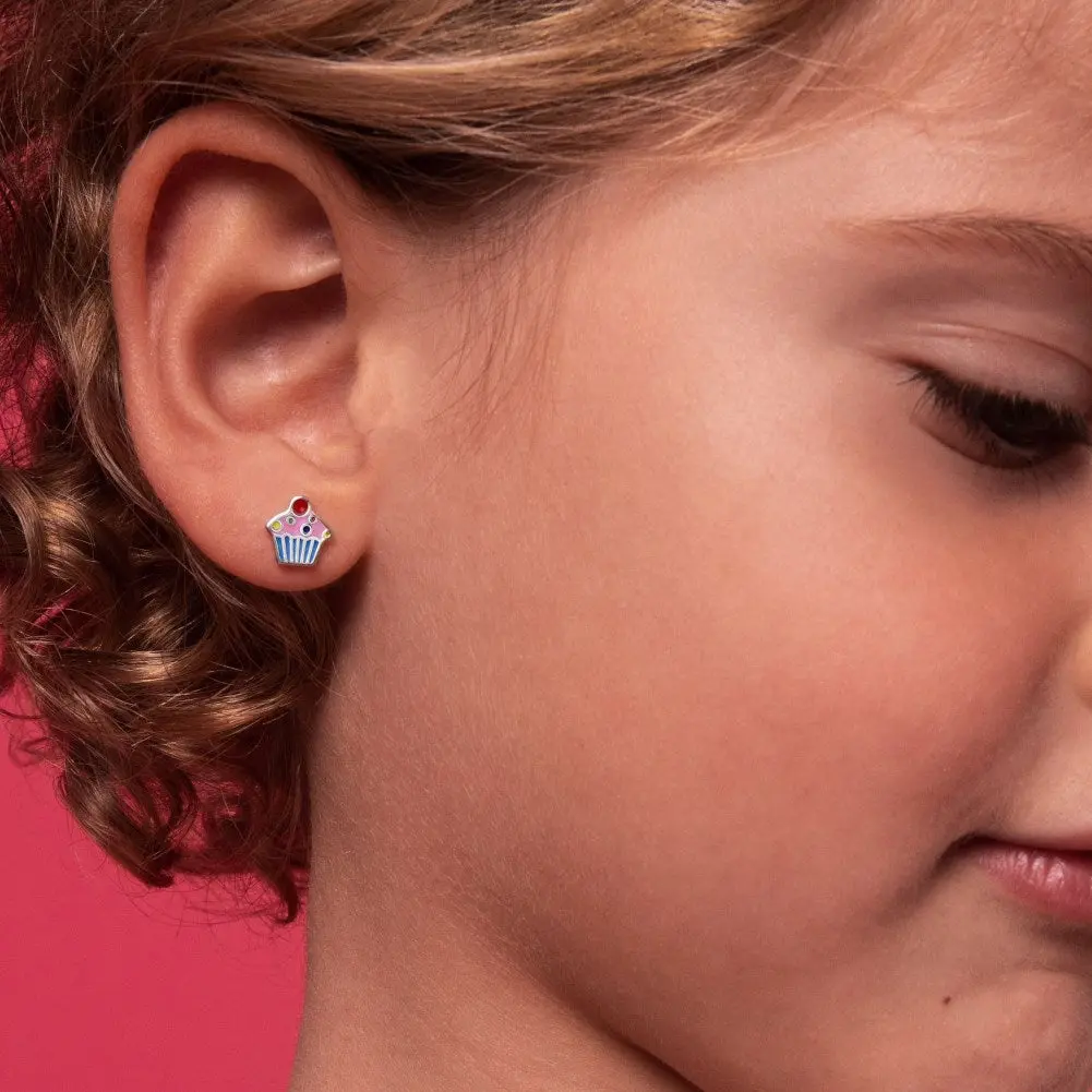 This pair of enamel cupcake earrings are colored brightly for a more eye catching look for children. These safety screw-back earrings are crafted carefully with 925 sterling silver which is hypoallergenic and suitable for young girls with sensitive ears. These earrings are a great accent for any outfit and stylish for your girls' daily wear! Order this almost literal sweet pair of earrings for your girl and they'll arrive in their own lovely gift box for you!