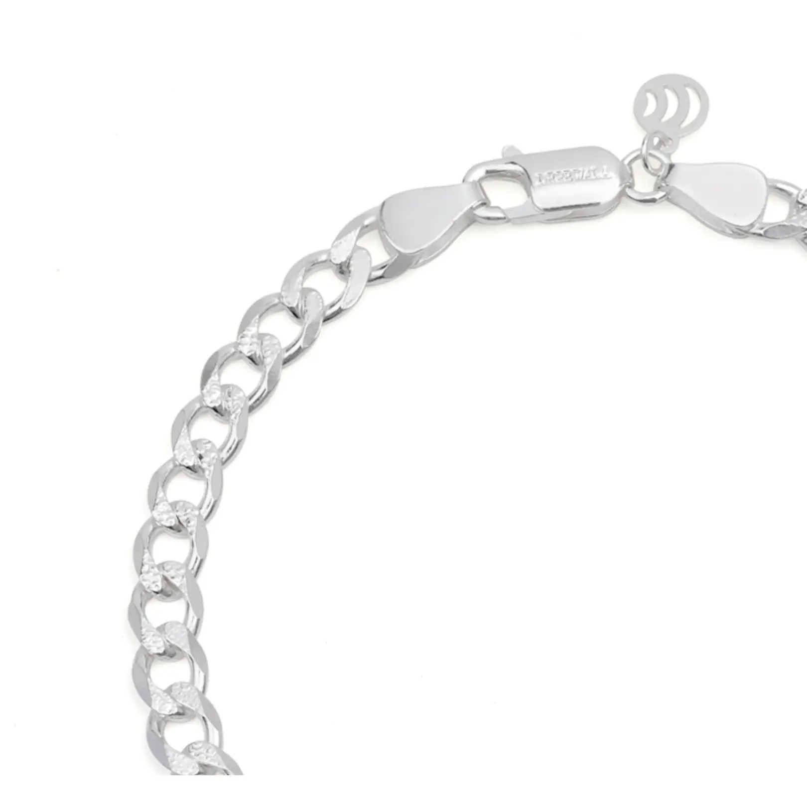 This 925 Sterling Silver bracelet features a series of textured, interlocking links that create a classic and versatile design. The bracelet offers a chic and classy look.