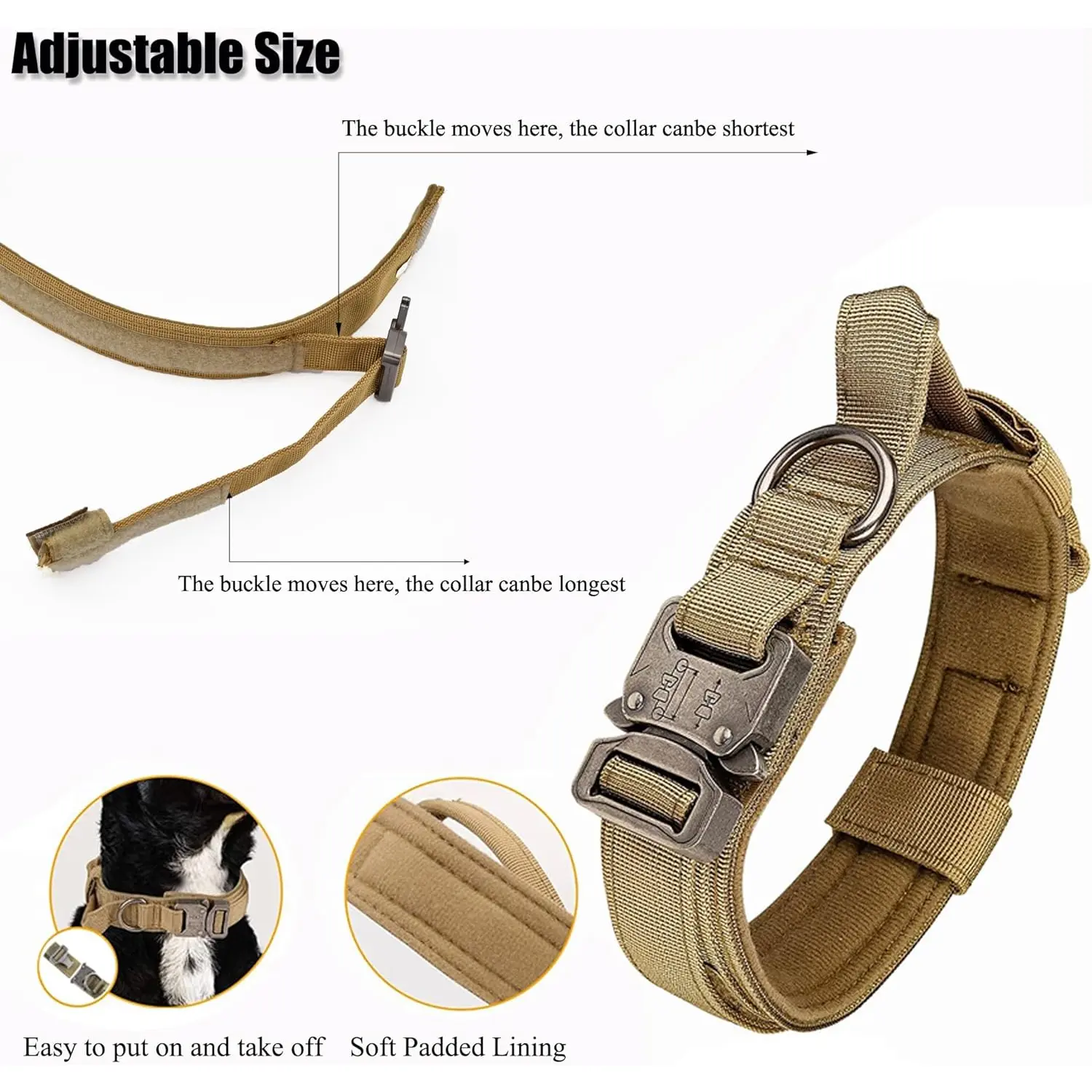 Tactical Dog Collar Military Dog Collar Adjustable Nylon Dog Collar Heavy Duty Metal Buckle with Handle for Dog Training