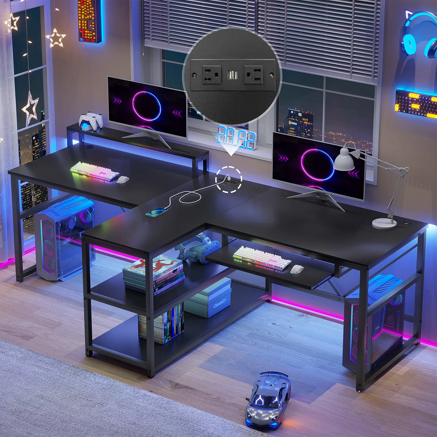 【Two Person Design】The 94.5 Inch - Length size allows 2 person to work side by side without compromising on space. Double working space with a 2-layer storage shelf in the middle. Perfect for your classmates, friends, workmate and you to study, play games and work together. This computer desk effortlessly blends with any furnishings in modern style.