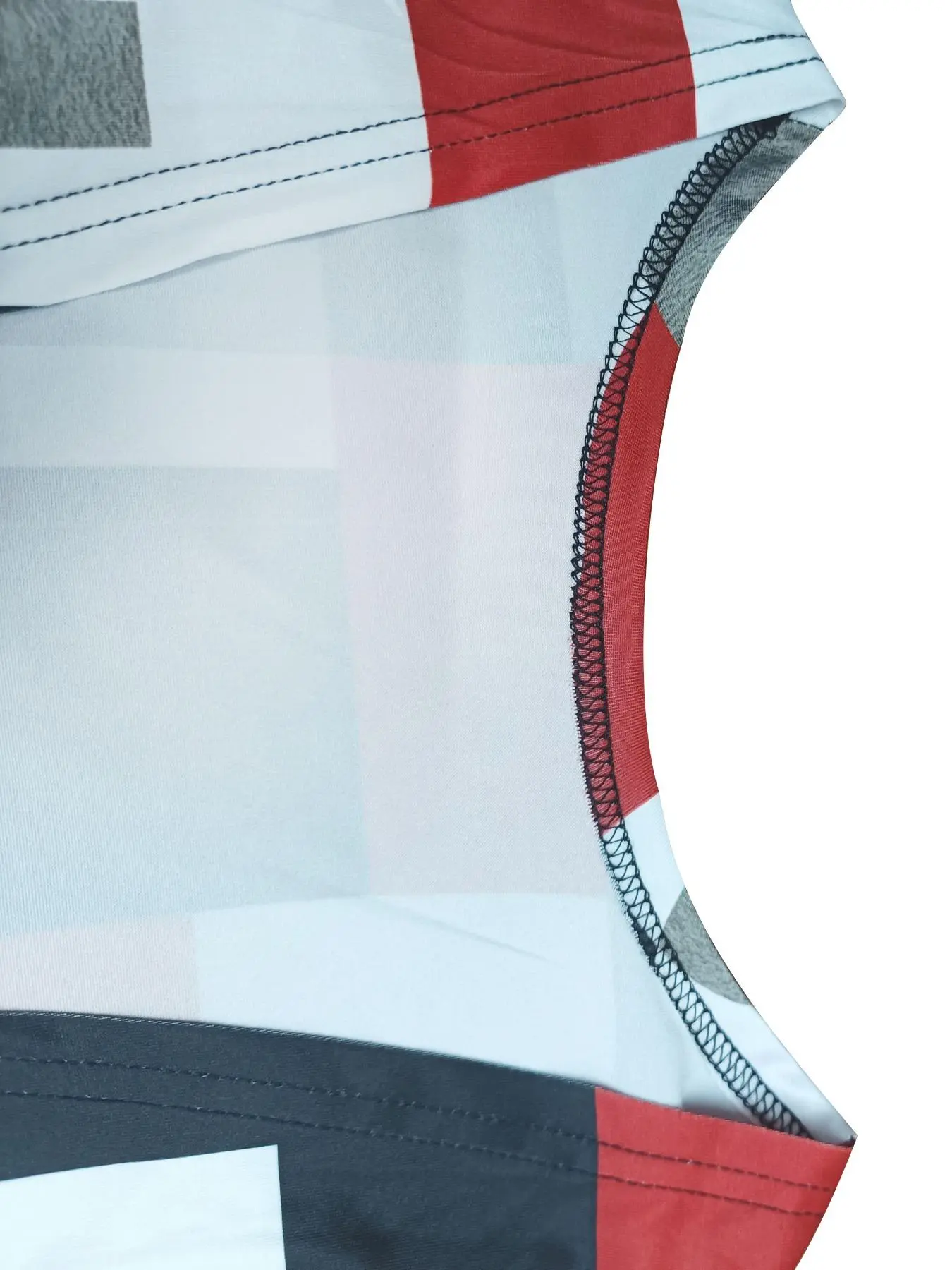 【Colorblock Pattern】: The contemporary colorblock print adds a modern touch, making this outfit visually striking while maintaining a fashion-forward vibe.