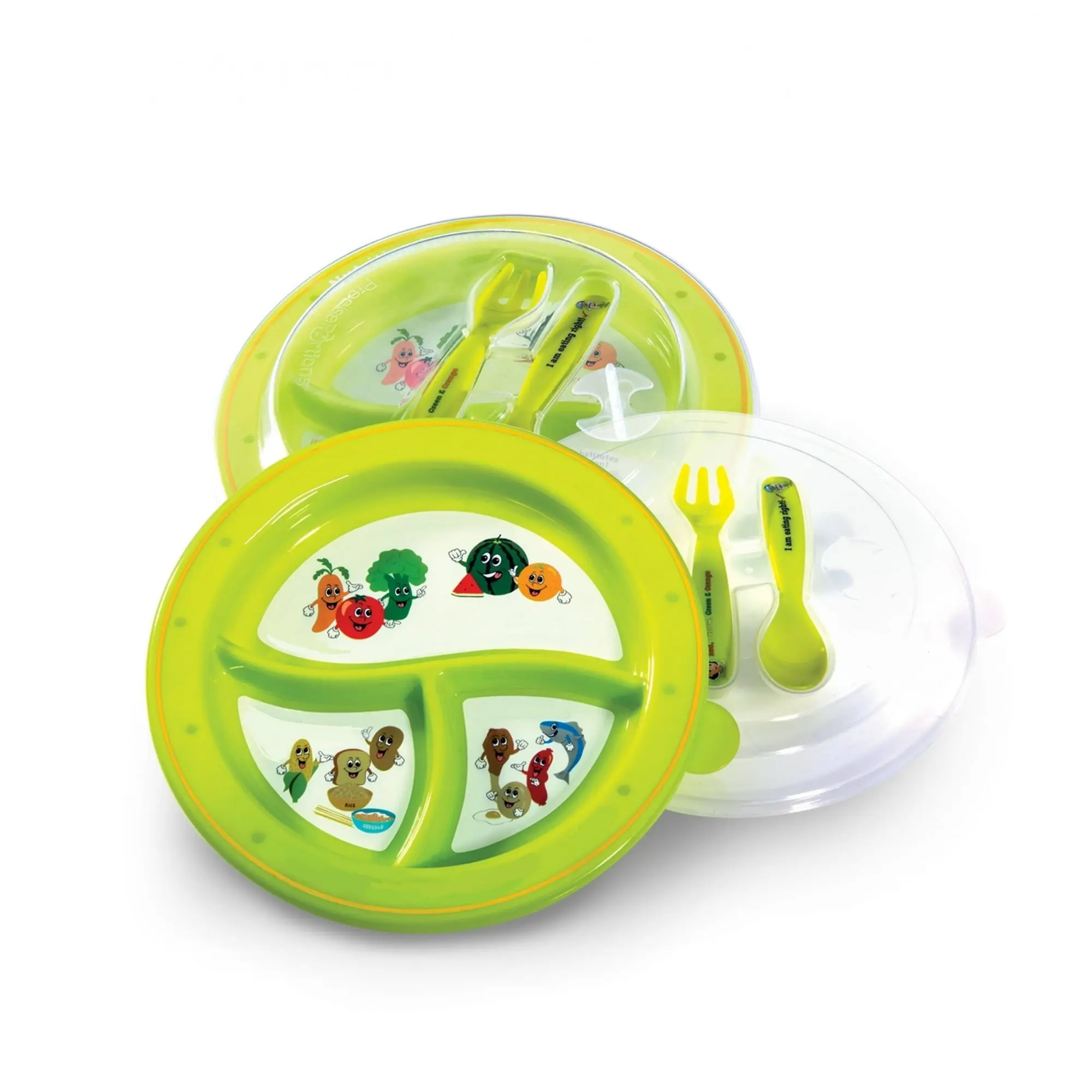 Kid-friendly food graphics provide instant visual cues, removing guesswork and helping children confidently build balanced plates on their own.