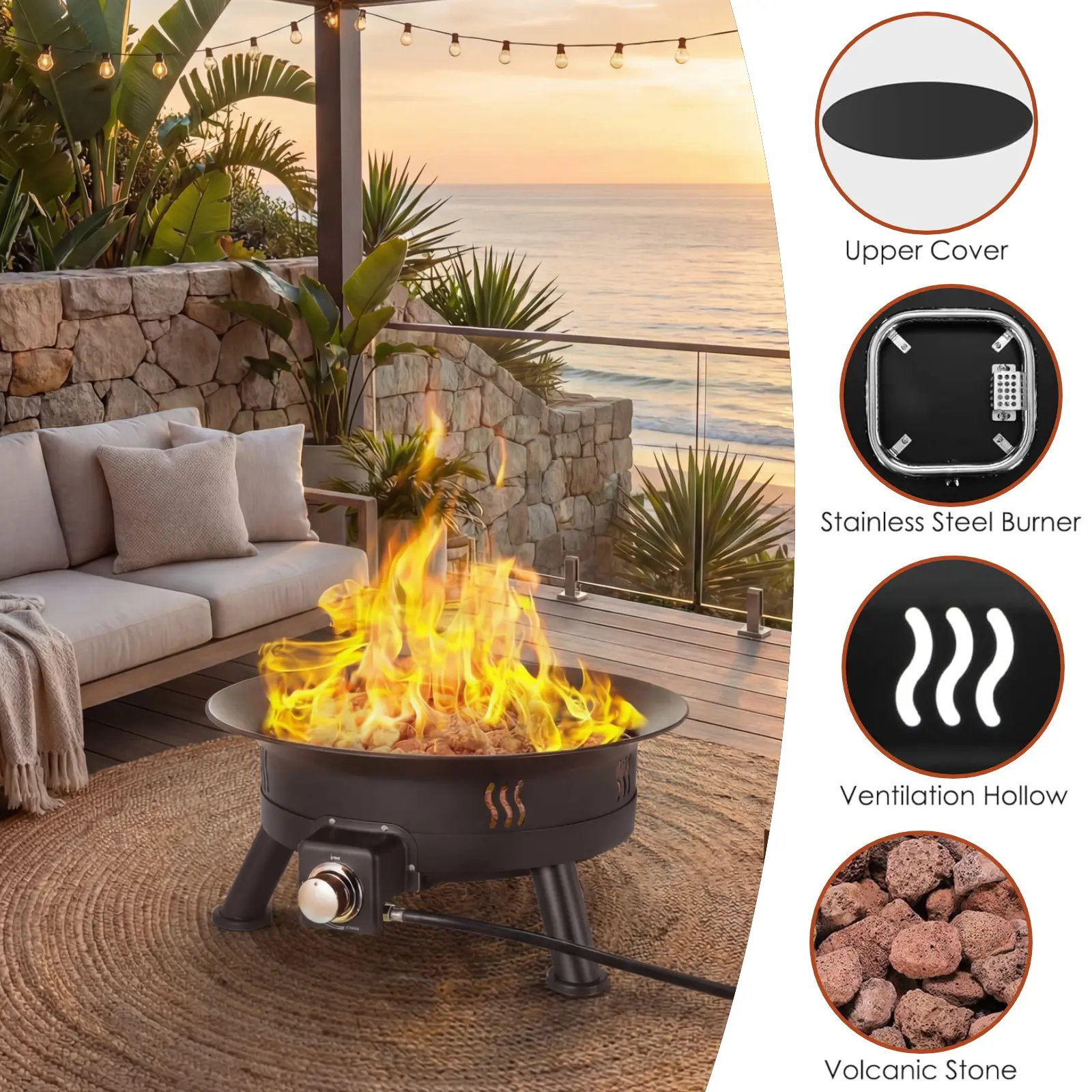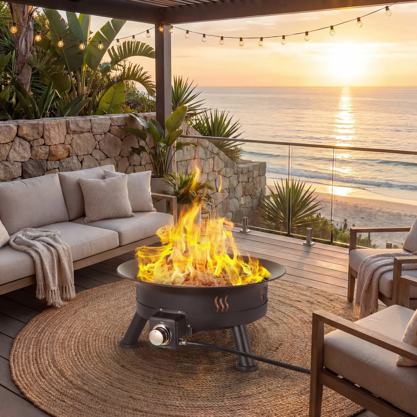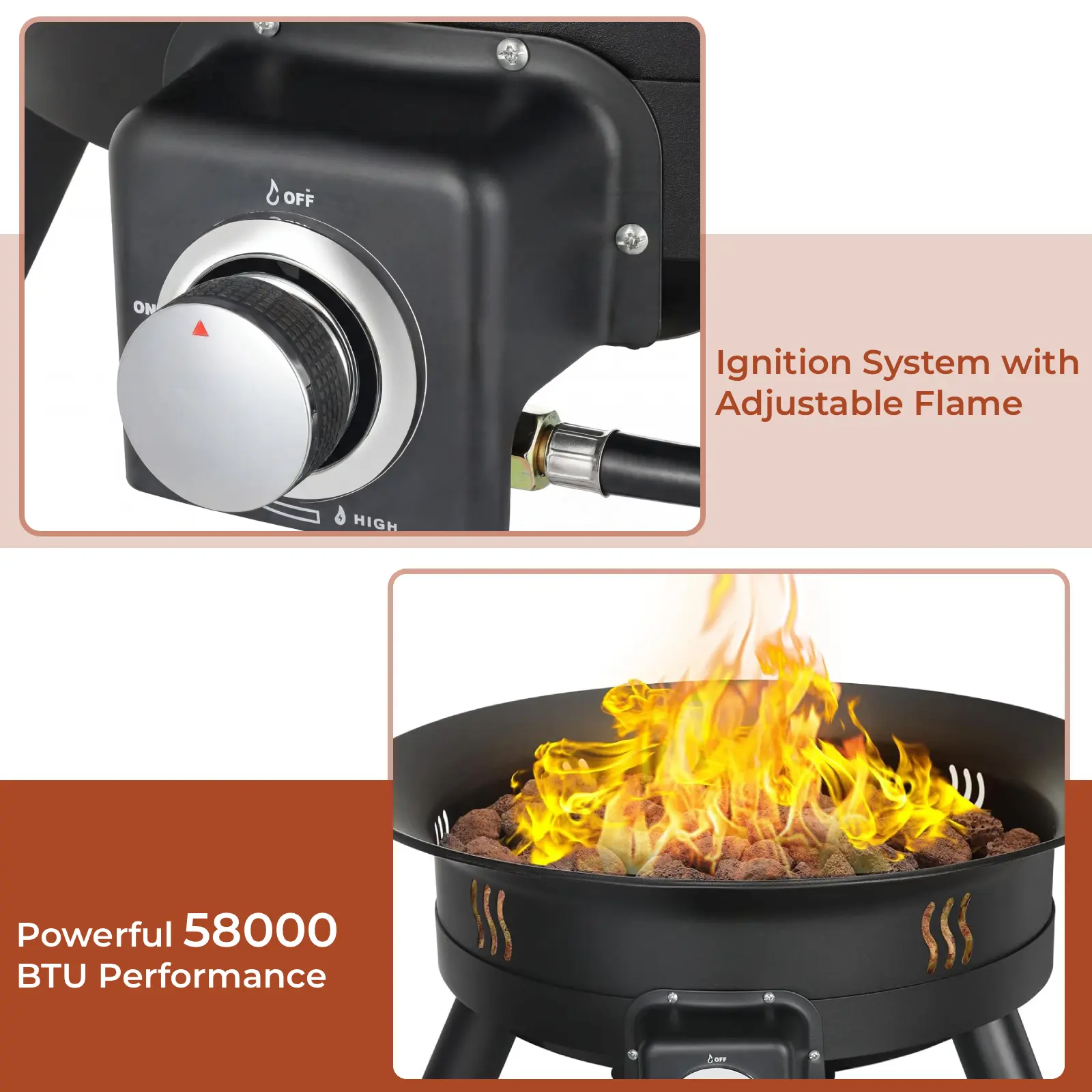 CSA approved for use during most campfire bans. 23.62’’×23.62’’×11.61’’ size, 58,000 BTU output provides strong warmth and light for backyard, camping, RV, beach and patio use.