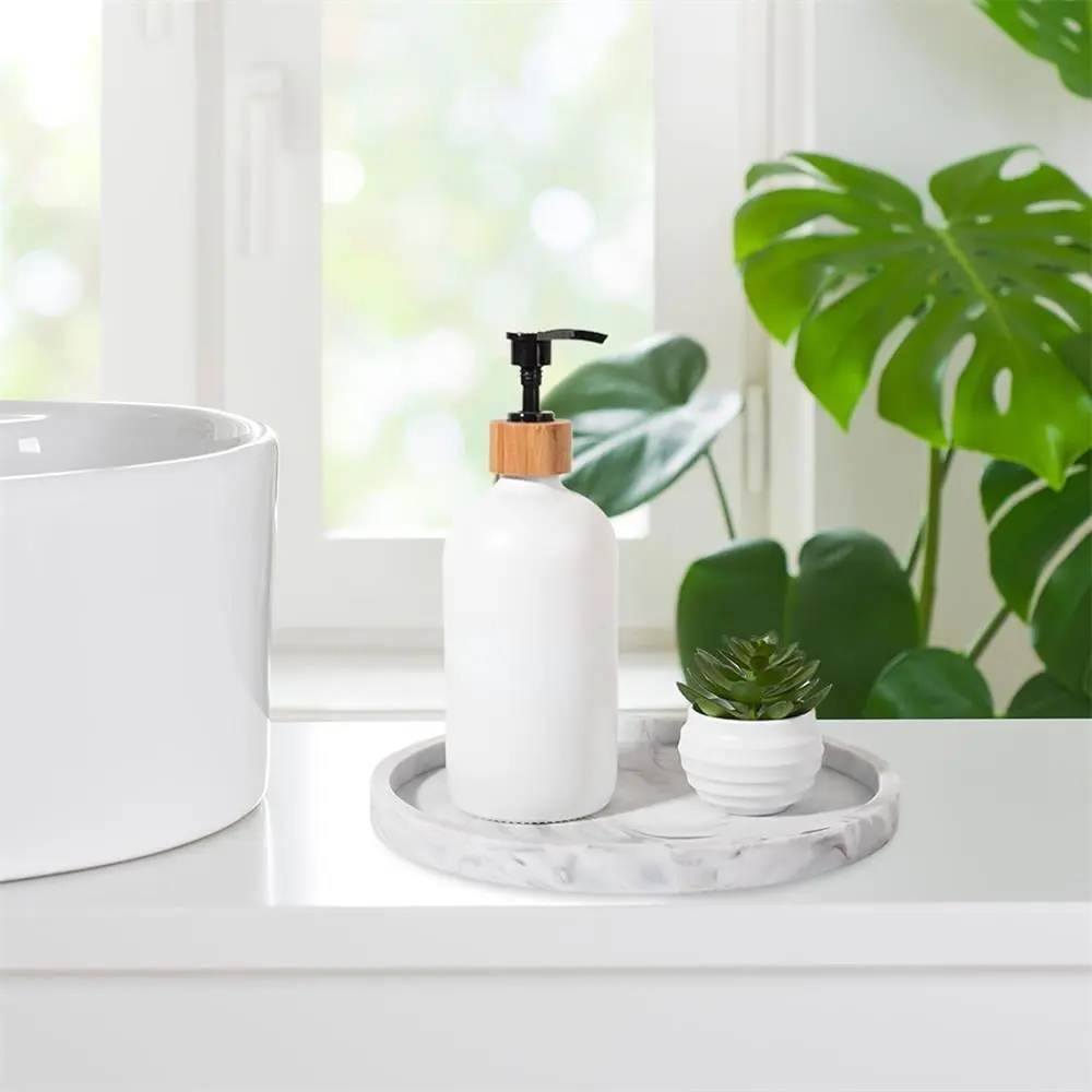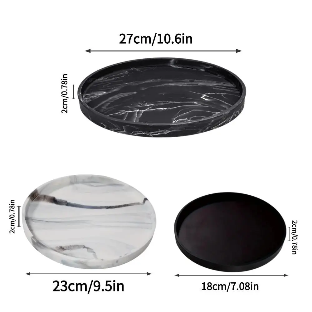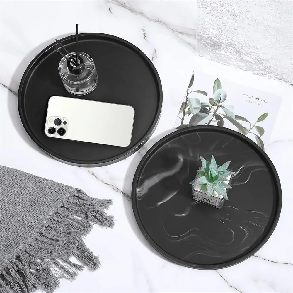 Silicone Round Bathroom Tray, 1 Count Solid Color Or Marble Pattern Makeup Tray, Kitchen Countertop Storage Rack, Home Organizer for Candle, Perfume, Bathroom Decor Supplies