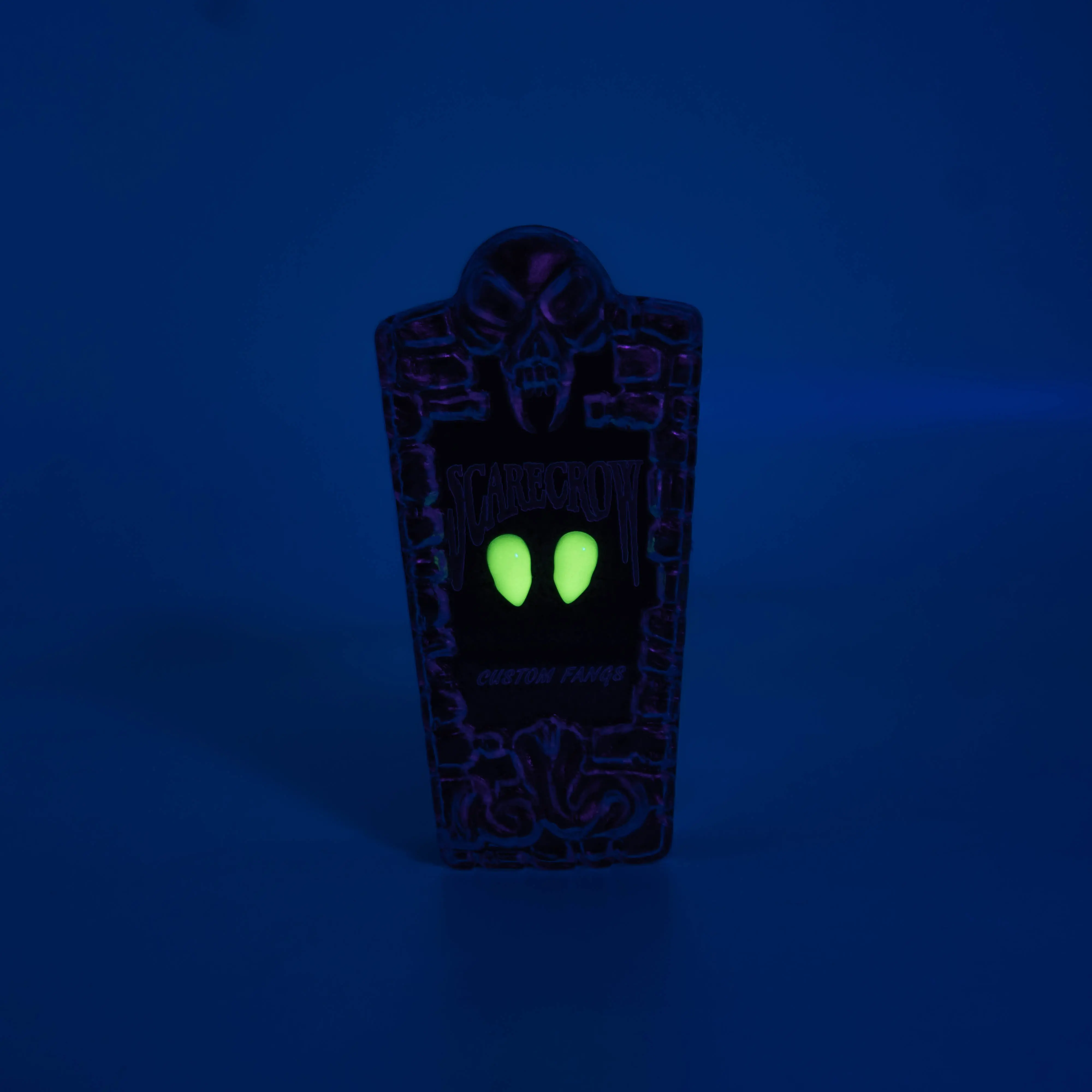 Small Glow-in-the-Dark Deluxe Custom Fangs are designed for people with smaller teeth, or those looking for a subtler look. They may fit either canines and/or incisors or bottom teeth. Fast, easy, comfortable, and totally realistic. Natural color fang caps are shiny, rigid, and beautifully contoured to look great in any mouth.