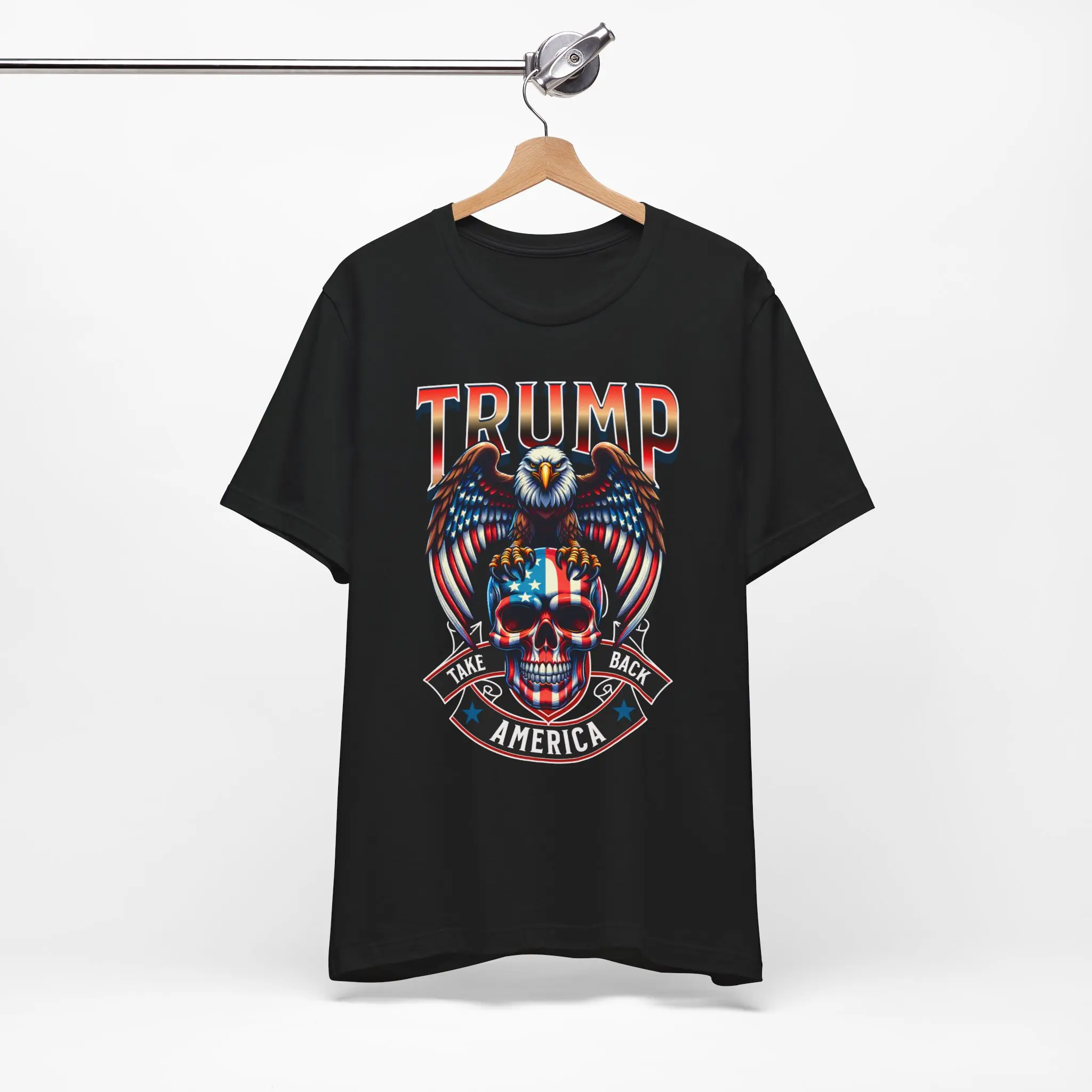 Show your support for Donald Trump with this “Take America Back” shirt featuring a striking eagle design. Perfect for rallies, gatherings, or everyday wear, this shirt is a must-have for any patriot. Made from high-quality materials, it ensures comfort and durability. The bold graphic and powerful message make it a standout piece in any wardrobe.