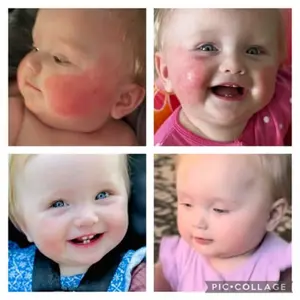 PURE MAGIC!! Our baby developed severe baby acne around 1 month old, this was the only picture I took of her acne but this was mild compared to what it became before trying the ointment. I was skeptical about if this ointment would really work and the price had been hesitant but I was ready to try anything so I ordered a jar and while waiting for it to arrive my sister in law gave us a little jar of hers and when I say it worked over night I’m not exaggerating! We applied it before bed and by the time morning came around the redness was totally gone! At certain angles you could still see little bumps however they were her normal skin color and the morning after that they were gone completely! We apply after every bath now and our baby’s skin has been so clear! I will ALWAYS have this in the house!
