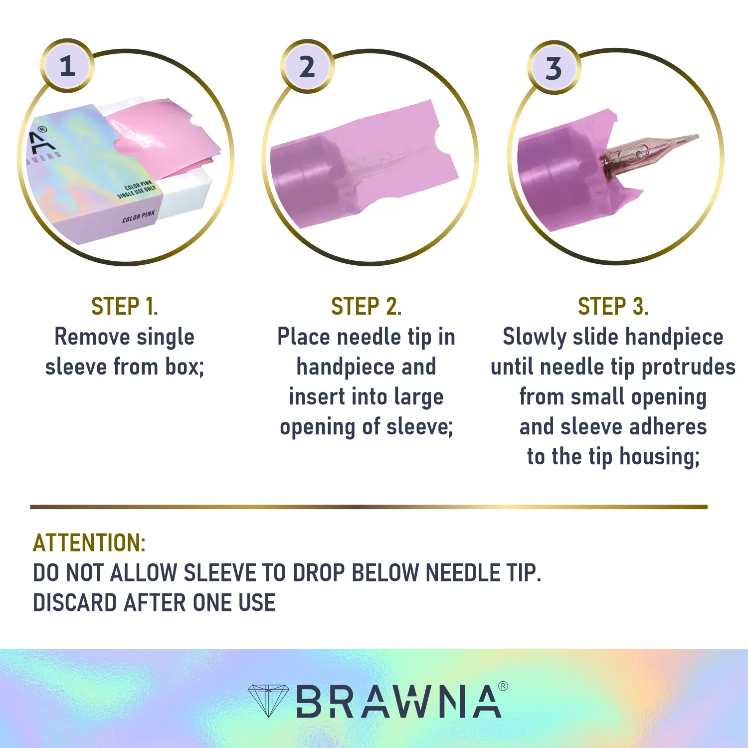 · IDEAL FOR: These sleeves are designed precisely to meet the needs of many professionals. They are perfect for tattoo artists, micro blading artists, permanent makeup artists, aestheticians, salon and home use. They are available in two different colors pink and clear so you can pick any according to your preferences.