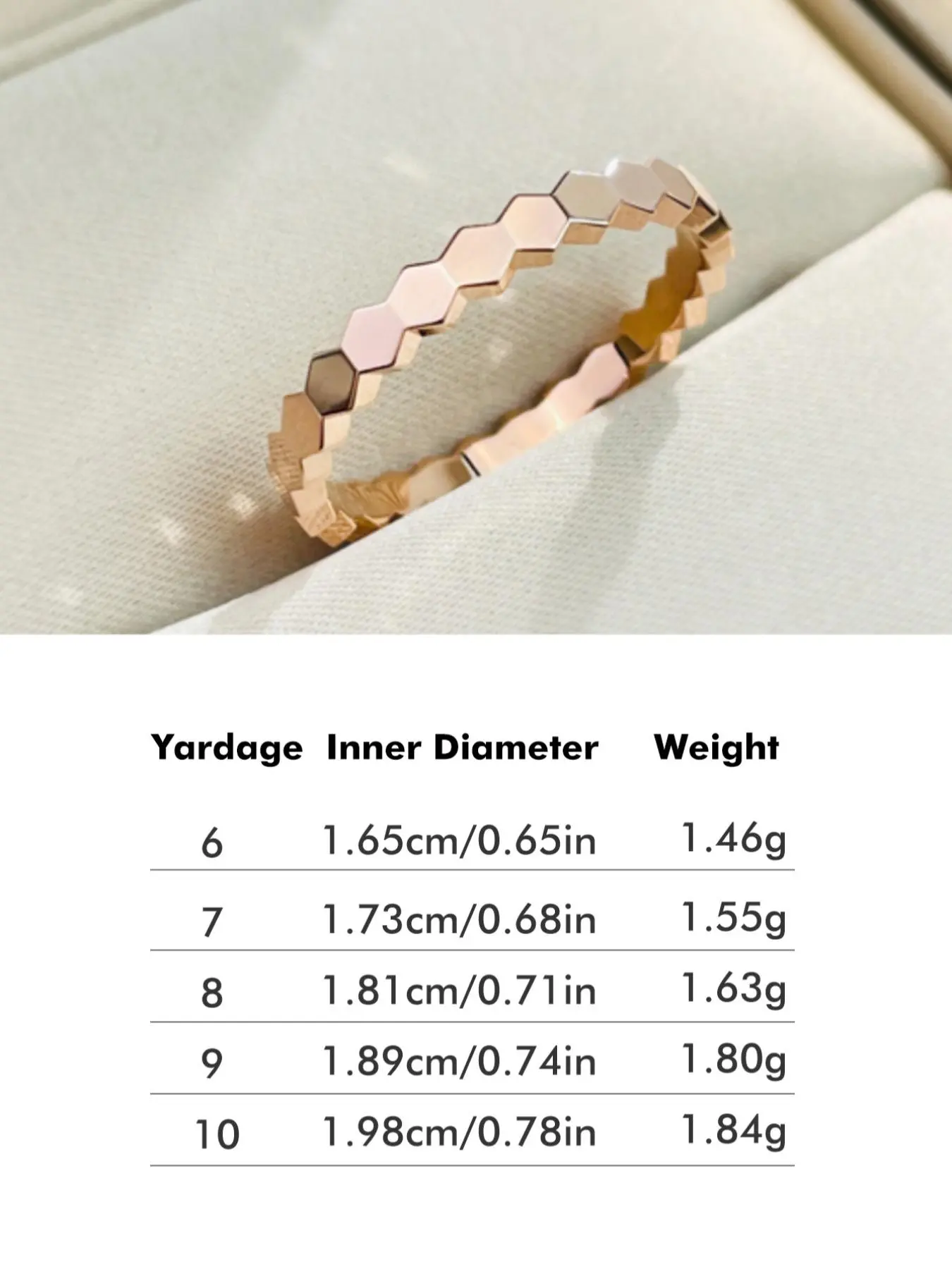 Beautiful band with diamond like stones. Fit well. Exactly as shown in the picture. Packaged in a plain gift box, ready to give as a gift. It also included a cleaning cloth.