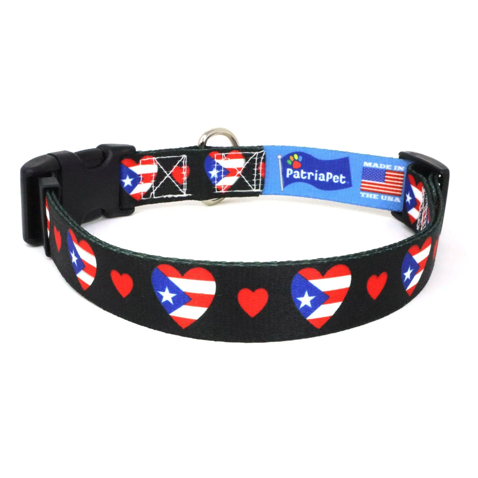 You’ll also love our flag-inspired dog collar with its bright red hearts. They're great for sporting events, holidays, festivals, and rugged enough for everyday use. They make super unique gifts too!