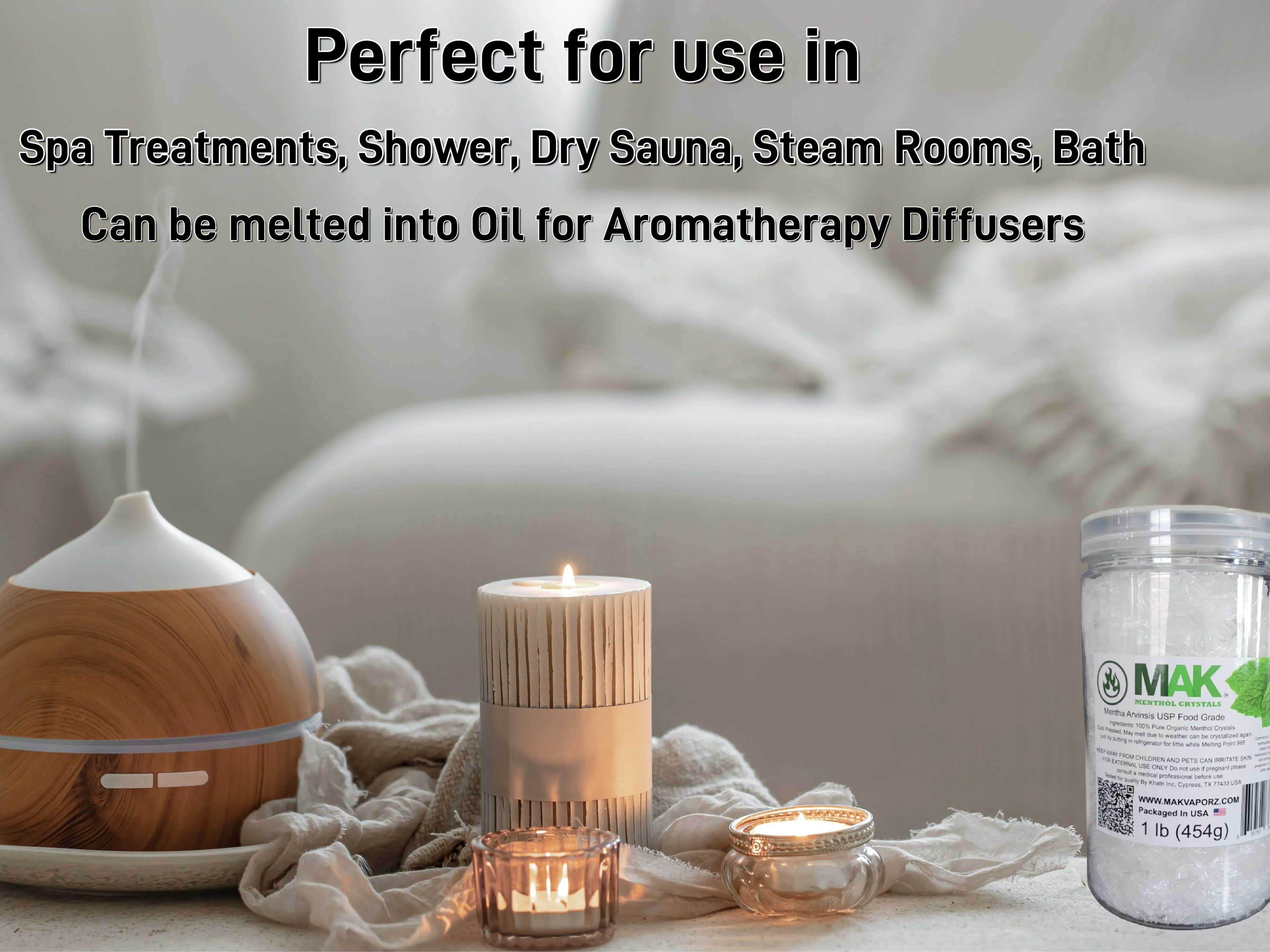 Menthol crystals can be used in aromatherapy diffusers to help relieve respiratory discomfort and congestion in the nose and lungs.
