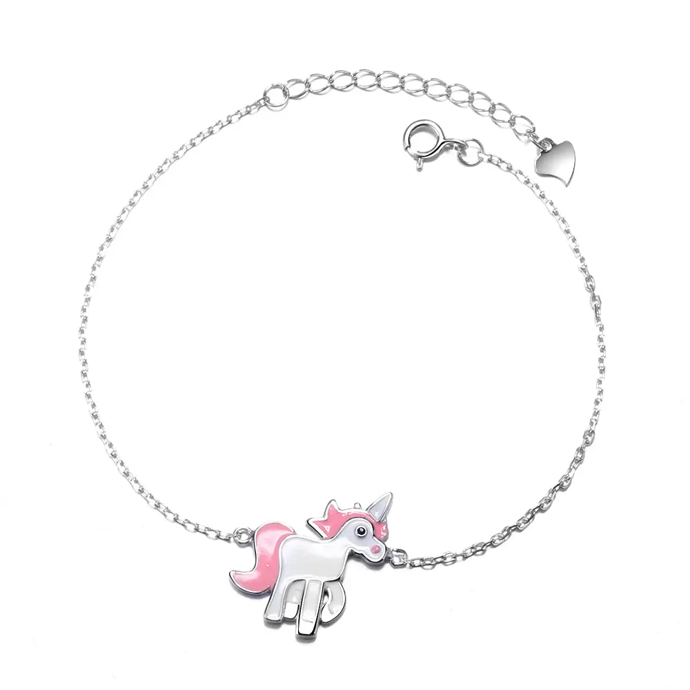 Introduce a touch of whimsical charm to your jewelry collection with this delightful Sterling Silver and Pink Unicorn Bracelet. The intricately crafted unicorn design is made from premium-quality Sterling Silver and features a charming pink enamel finish that adds a touch of sweetness and playfulness to the design.