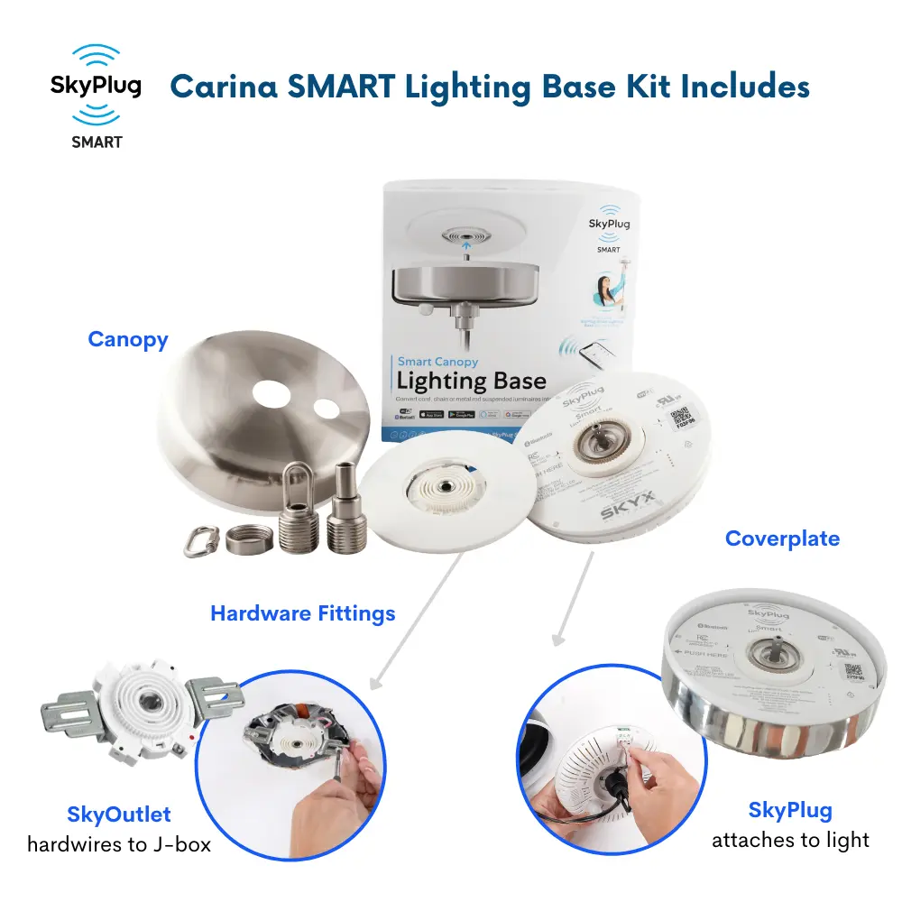 Elevate your space with the Carina Canopy, featuring an integrated SKYX Smart Lighting Base. Available in brushed nickel, weathered brass, modern gold, polished chrome, bronze, champagne bronze, matte white, and matte black finishes. This canopy offers versatile options to suit any decor.
