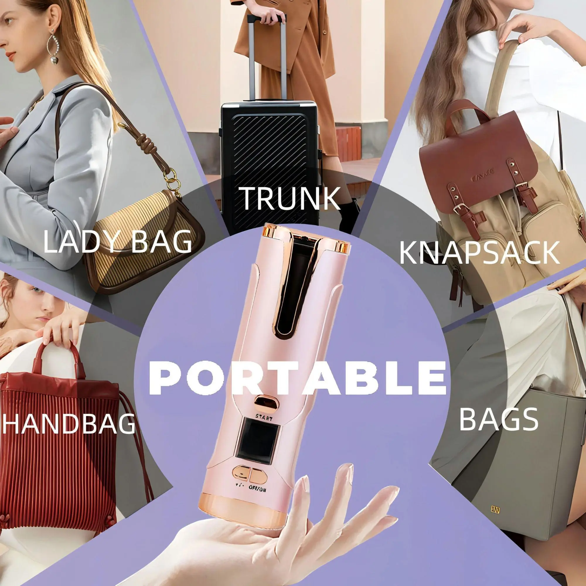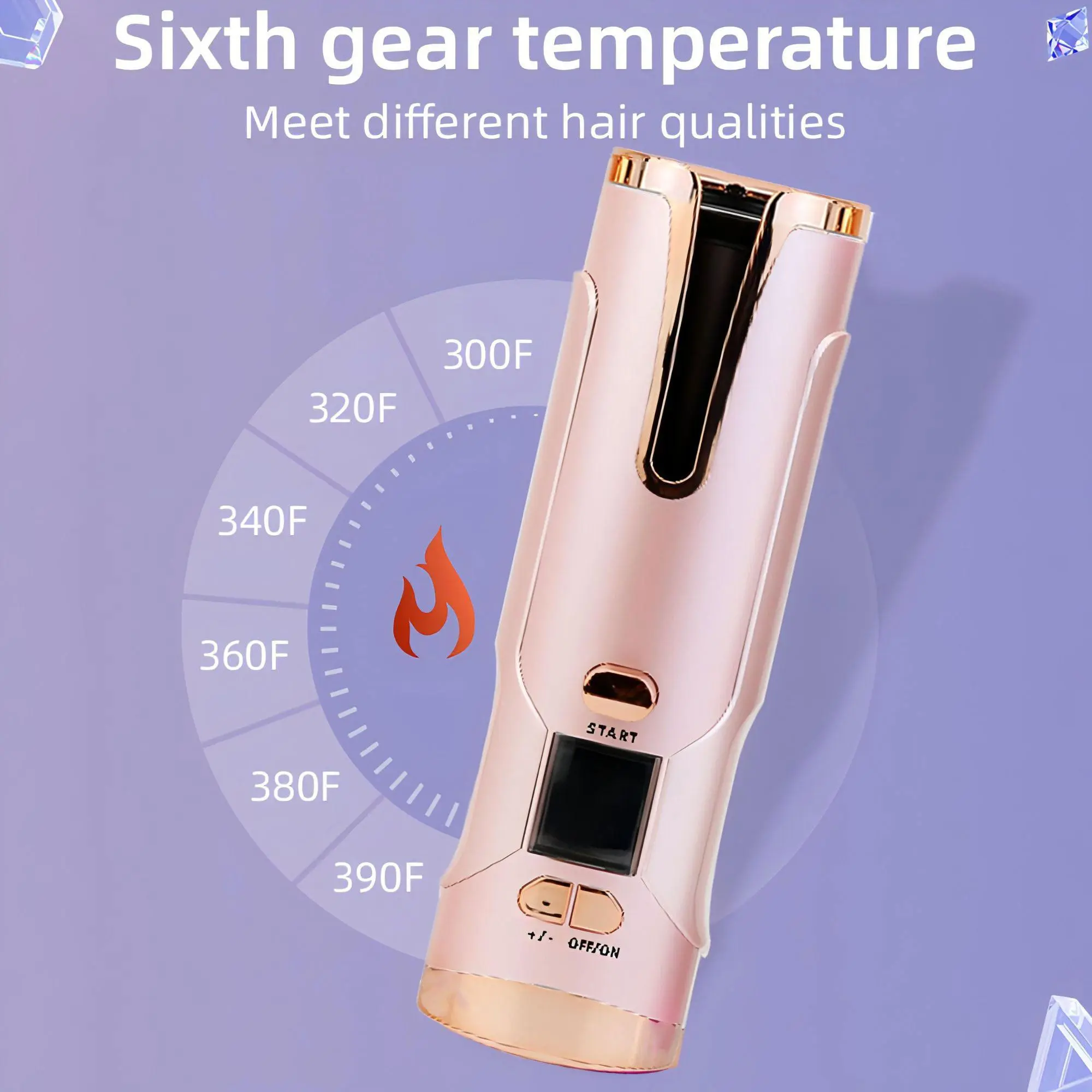 Cordless Hair Curler, Portable Automatic Wireless Hair Curler, Curling Iron with 6 Temperatures and 6 Timer Setting, Professional Hair Styling Tool for Home & Salon Use, Automatic Hair Curler
