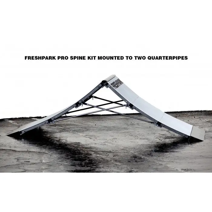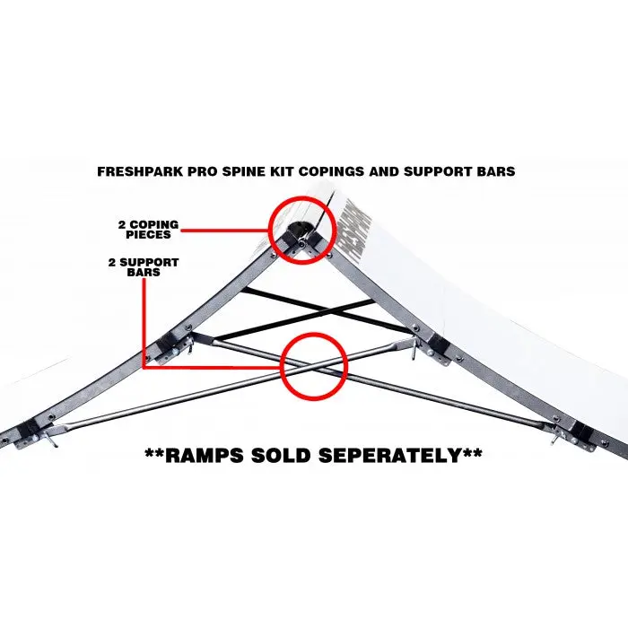 The Pro Spine Kit is an accessory added to two existing Quarterpipes. You must purchase the two Quarterpipes separate in order to use this kit. The Pro-Spine has two coping pieces in place of the deck panel of the quarterpipes to create the perfect spine. Steel is powder coated for maximum durability and grind-ability. This kit can also be added to the side of the Fun Box to allow both sides to be grinded.