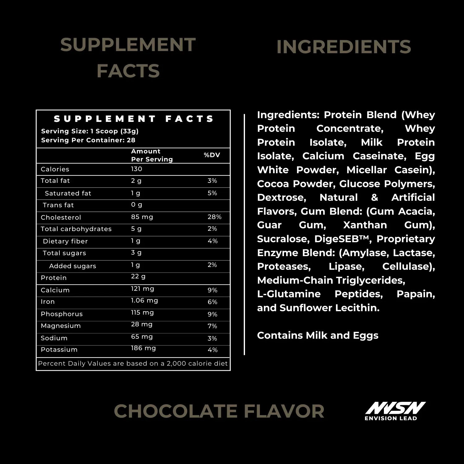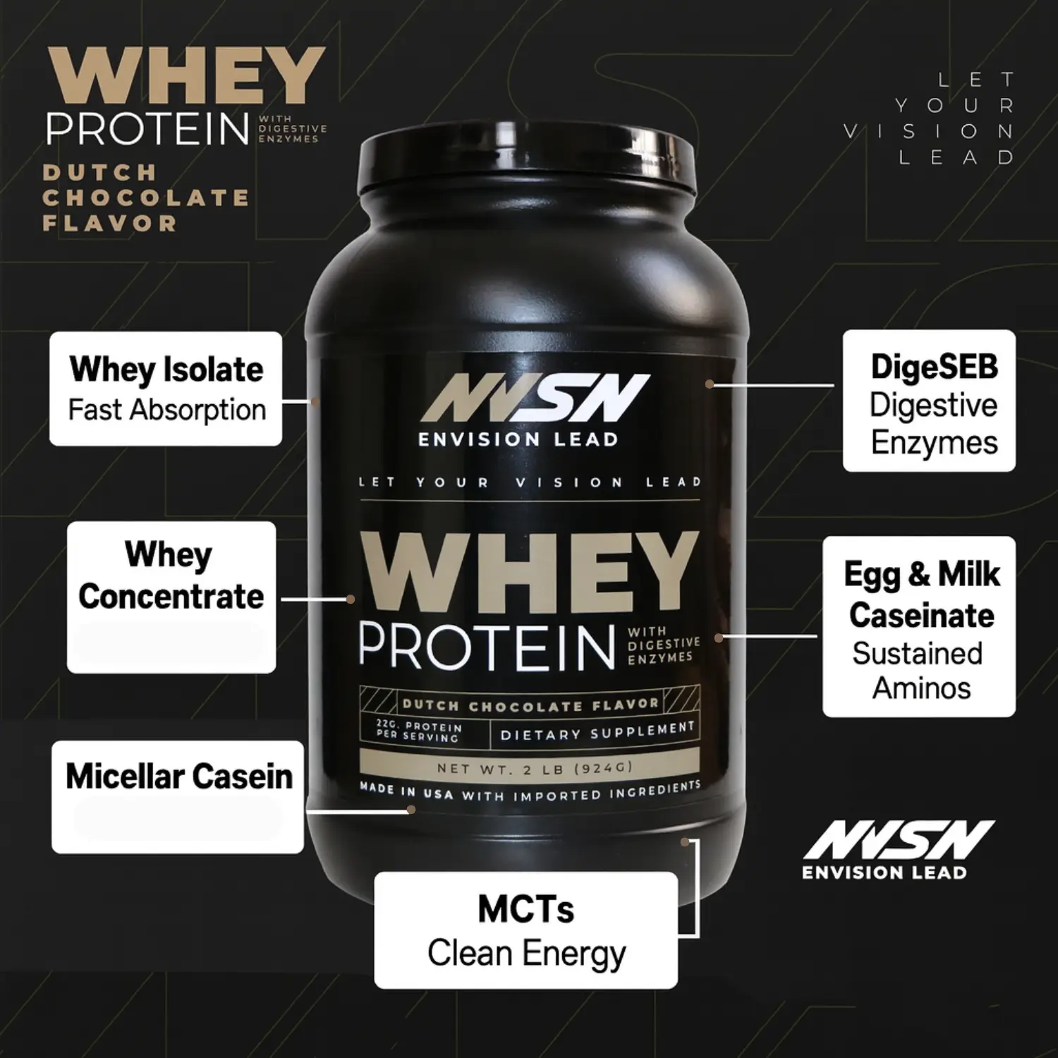 NVSN ENVISION LEAD WHEY PROTEIN DUTCH CHOCOLATE Dietary Supplement 2.0 LB WITH DIGESTIVE ENZYMES