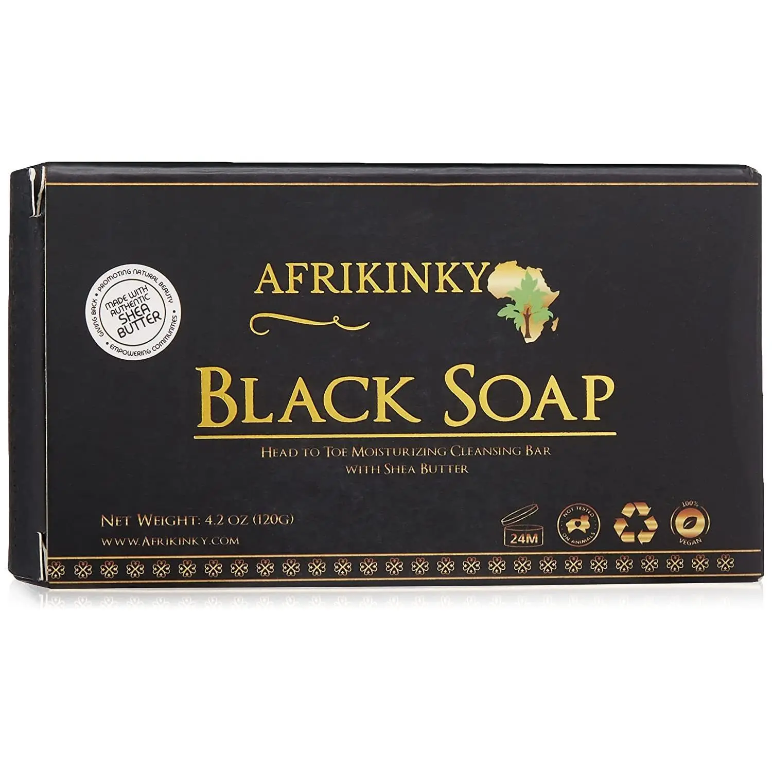 Revitalize your skincare routine with Afrikinky African Black Soap, a blend of traditional African ingredients like shea butter, water and cocoa pods. This soap gently cleanses, leaving your skin feeling fresh and moisturized.