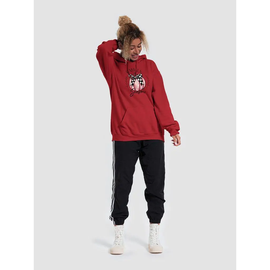 Embrace the "Kamala Season" with our Checkered Pumpkin Hoodie, a high-quality classic featuring a double-lined hood. Made with 50% pre-shrunk cotton and 50% polyester, this midweight fabric hoodie is perfect for any adventure. Available in unisex sizing and various colors. Get yours now!
