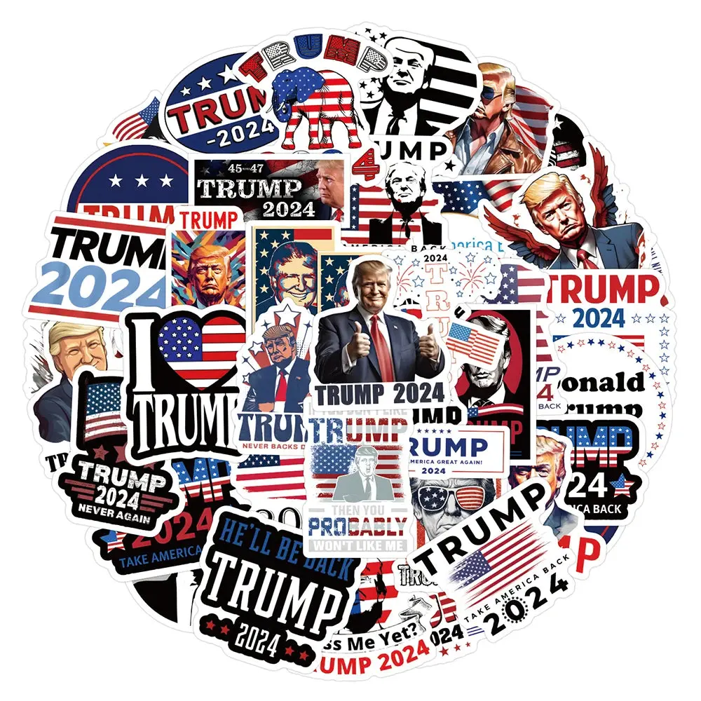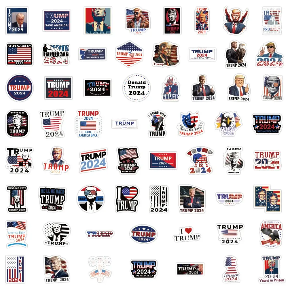 Show your support for the 45th President with our 2024 Donald Trump Stickers! Featuring a vibrant cartoon design, these waterproof decals are available in 10, 30, 50, or 100 piece packs. Perfect for adding a touch of personality to your belongings while displaying your political pride.