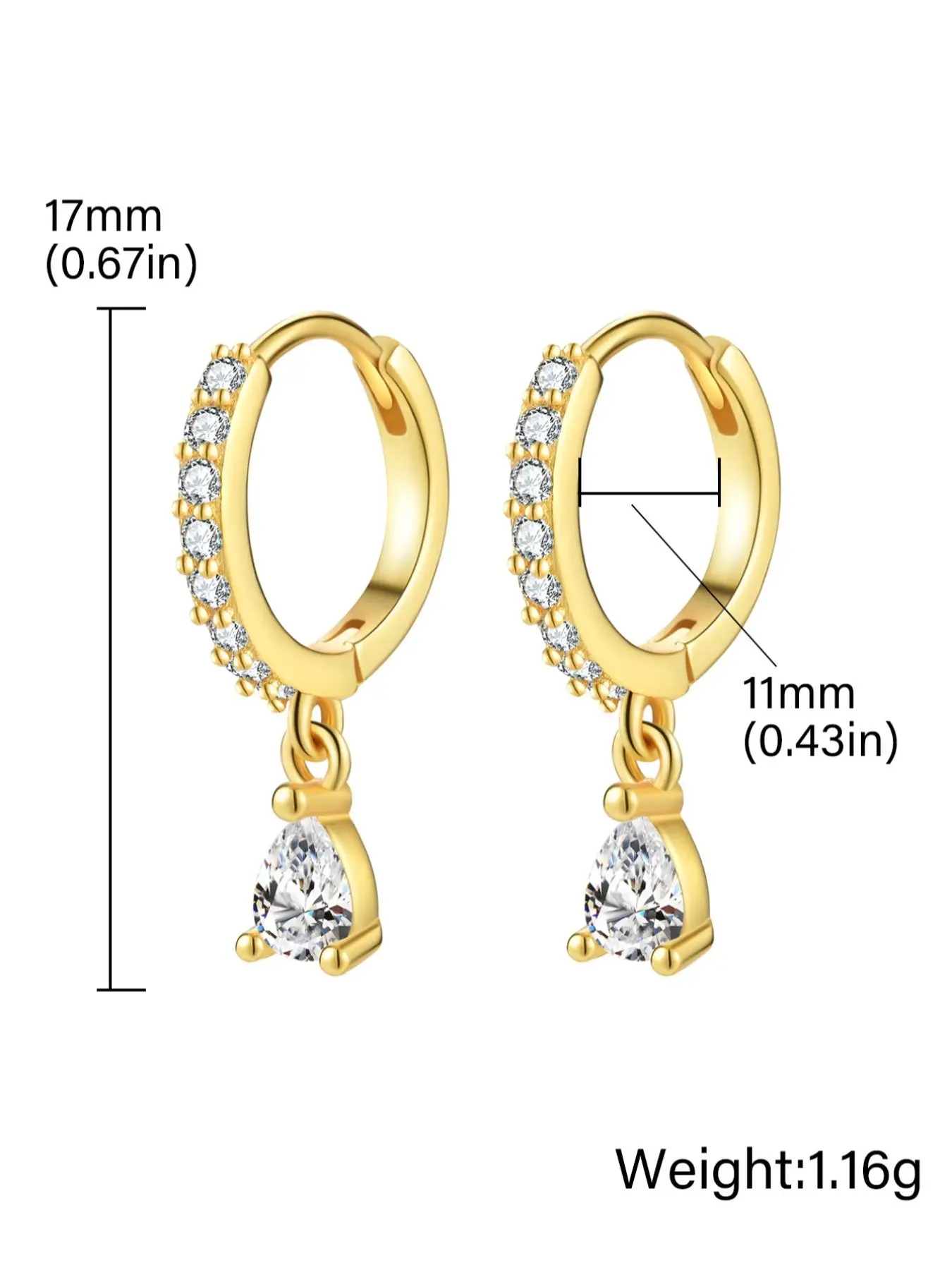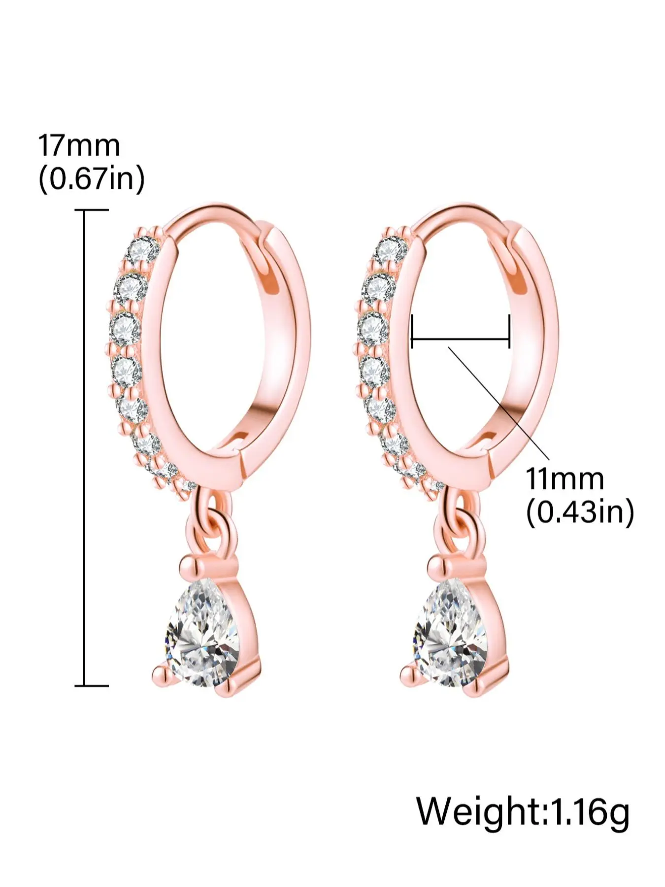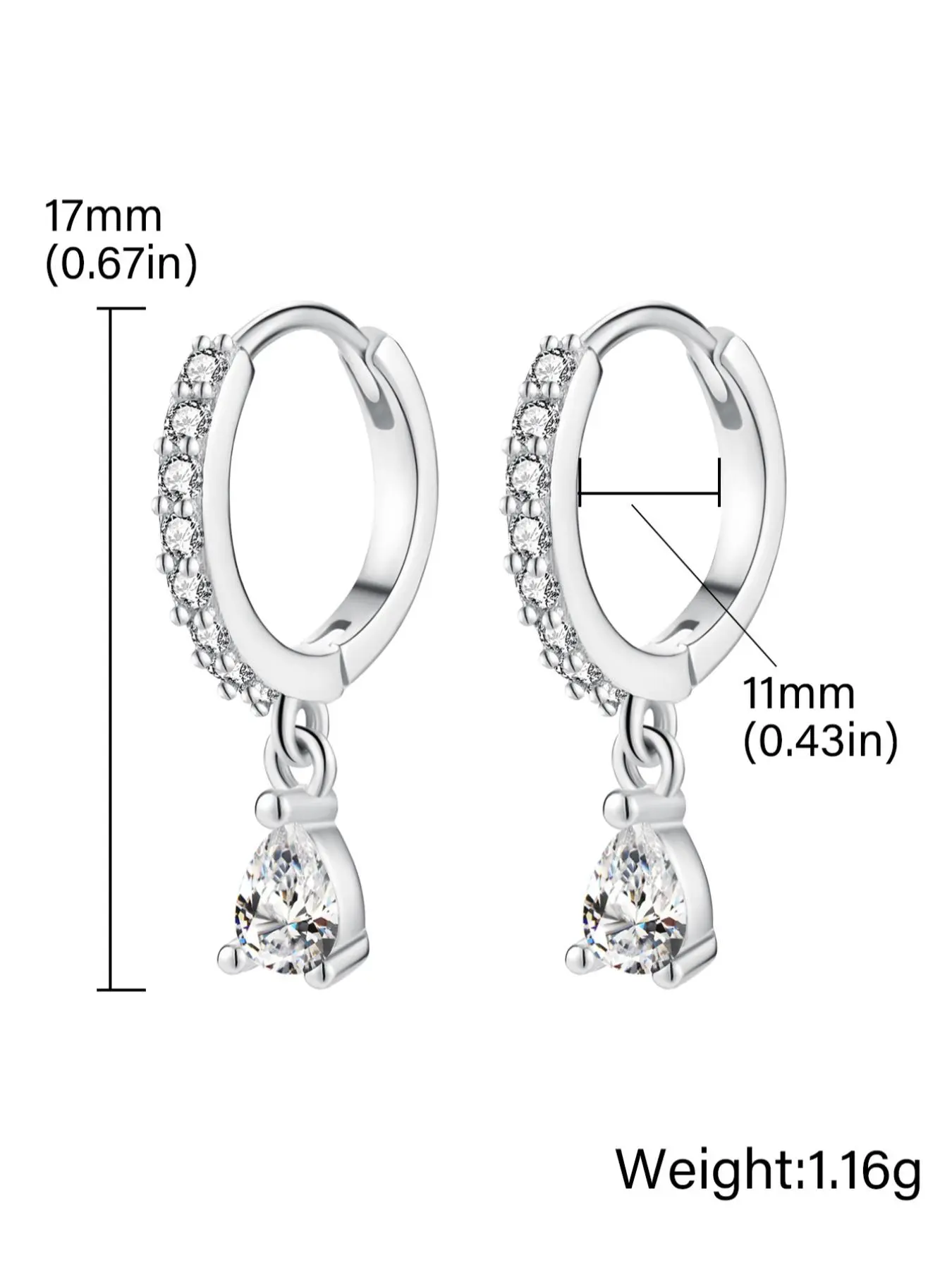 925 Sterling Silver Water Drop Shaped Zirconia Decor Dangle Earrings, Fashion Jewelry for Party, Daily Clothing Decor, Trendy All-match & Exquisite Jewelry for Gift, Tear Drop Earring, Teardrop Earrings