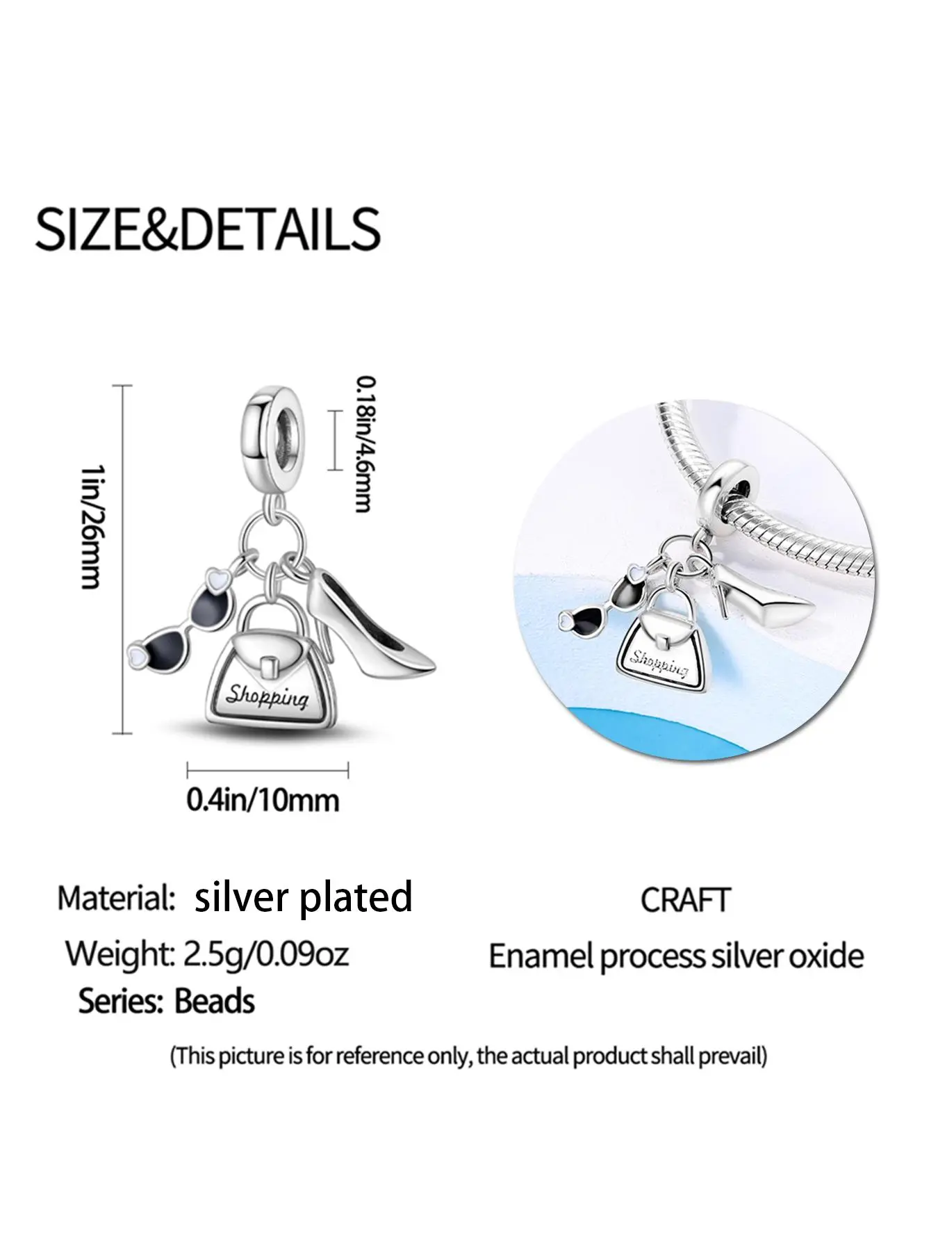 925 Sterling Silver High Heels & Sunglasses & Bag Design Charm, Fashionable Pendant Charm for Women Bracelet, Diy Jewelry for Birthday Gift