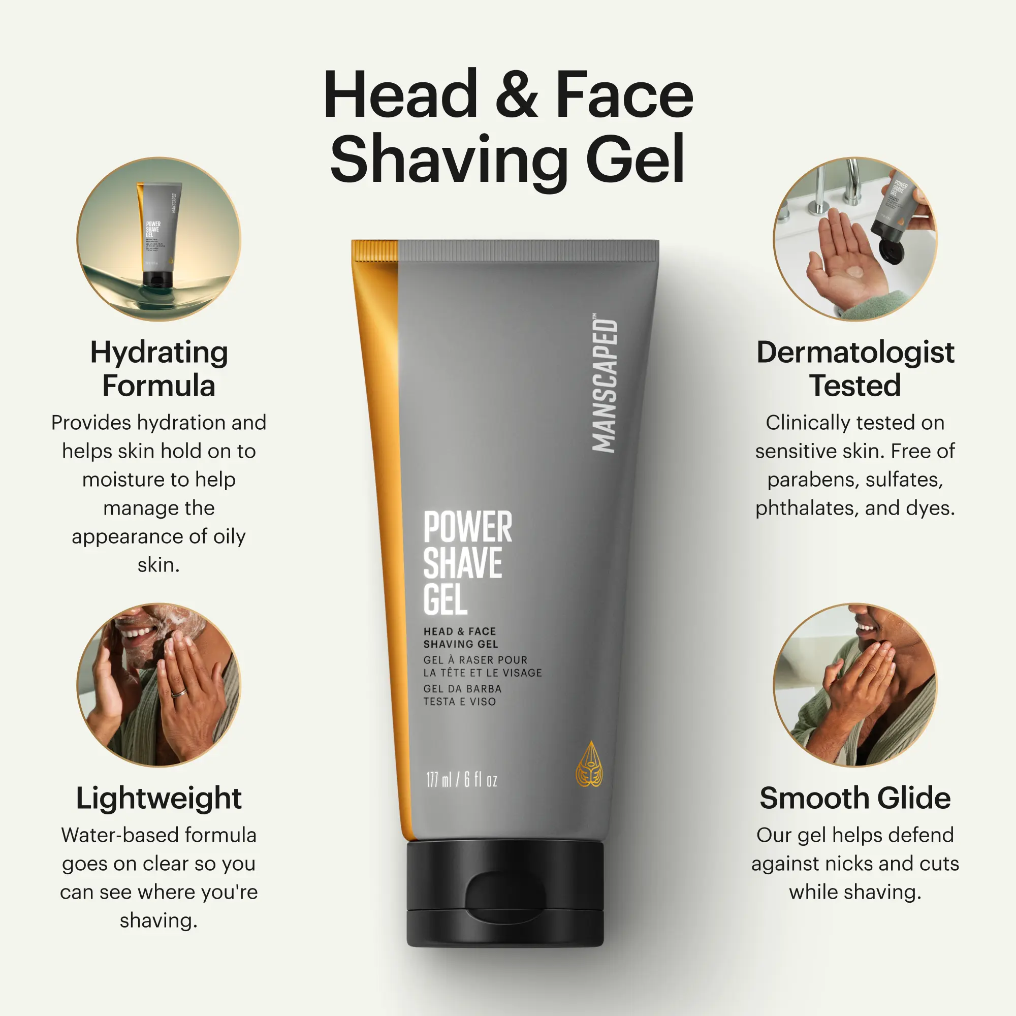·POWER SHAVE GEL: Clinically tested on sensitive skin, our lubricating, performance-based shaving gel helps prep your head and face for a close, clean, and comfortable shave.