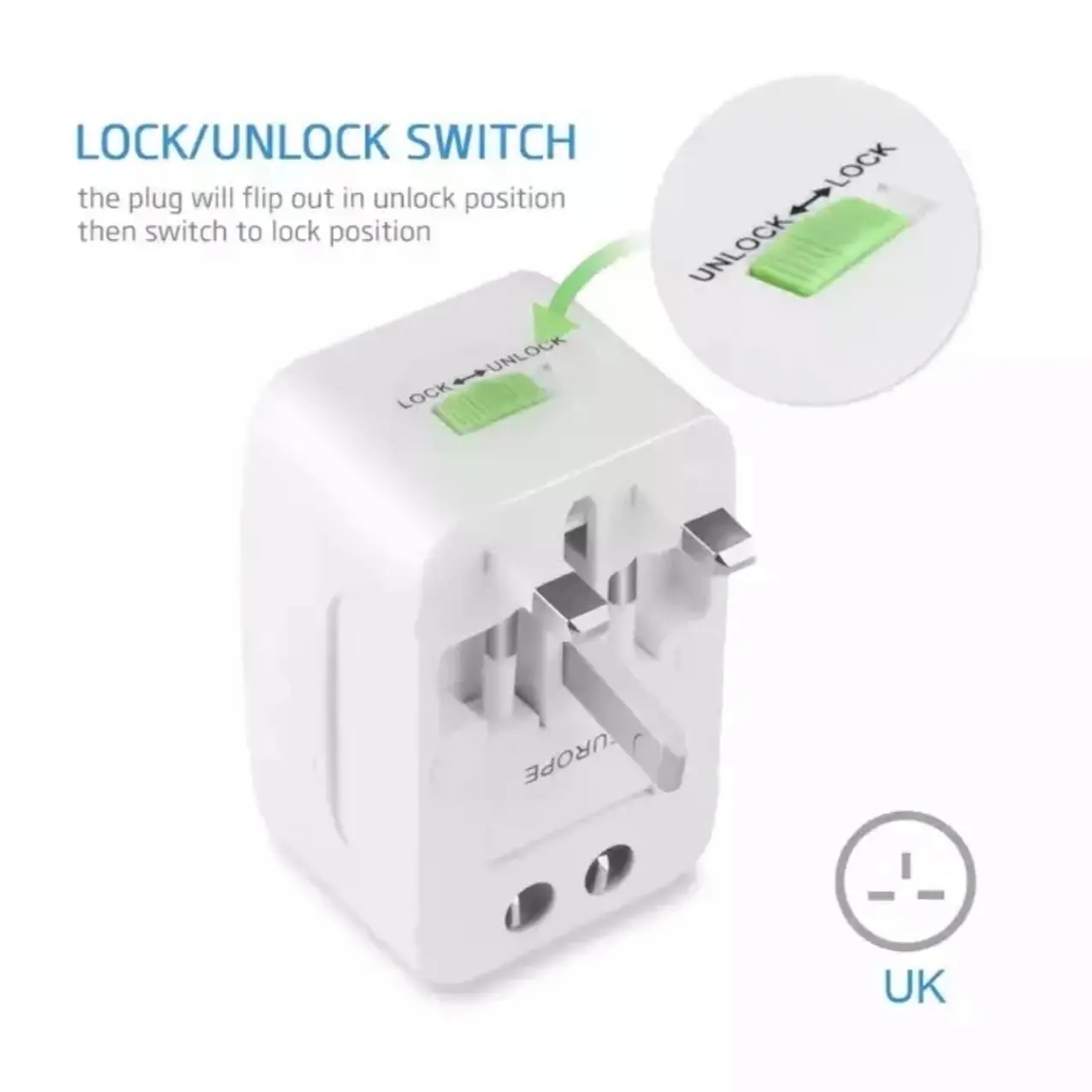 Ever find yourself juggling different plugs while traveling abroad? This all-in-one universal power adapter solves that headache by supporting over 150 countries. Whether you’re in the US, UK, Europe, or Australia, you can easily charge your devices without swapping adapters. It features built-in USB ports for fast charging your phone, tablet, or laptop all at once. The compact, lightweight design fits snugly in your carry-on or backpack, making it perfect for globetrotters and business travelers alike. Plus, safety is a top priority with surge protection and child safety shutters built in. Inside the box, you get the universal adapter ready to power your devices wherever your adventures take you. Say goodbye to bulky adapters and hello to simple, reliable charging worldwide. Grab yours today and travel smart with seamless power access!