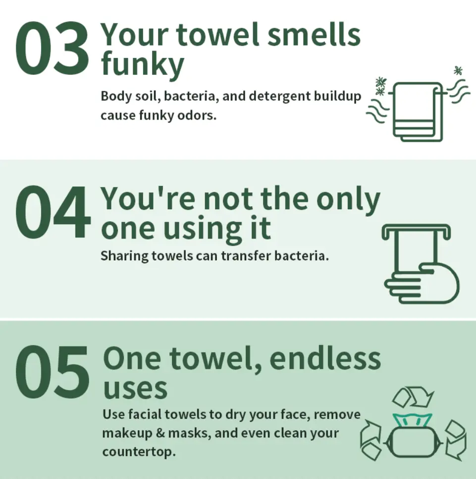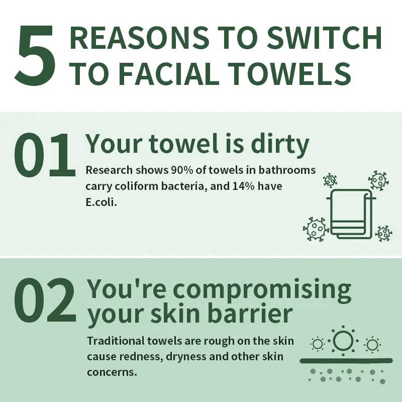 Safe & Healthy Face Towels: Made from ultra-soft, cozy biodegradable viscose wood pulp, these towels are chemical-free, unscented, lint-free, and non-irritating—ideal for sensitive skin. Natural plant origin, recyclable, and biodegradable, making them great for the environment.