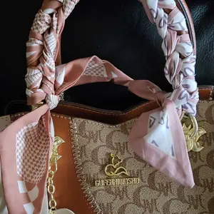 Added one of the scarves to my tote back to dress it up a little. Really cute anda good length. I could see these being good for multipurpose