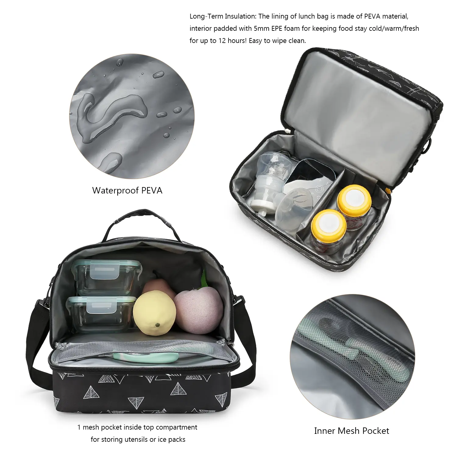 Lunch Tote Bag Double Layer Cooler Bag Small Breast Pump Bag Breastmilk Cooler Bag