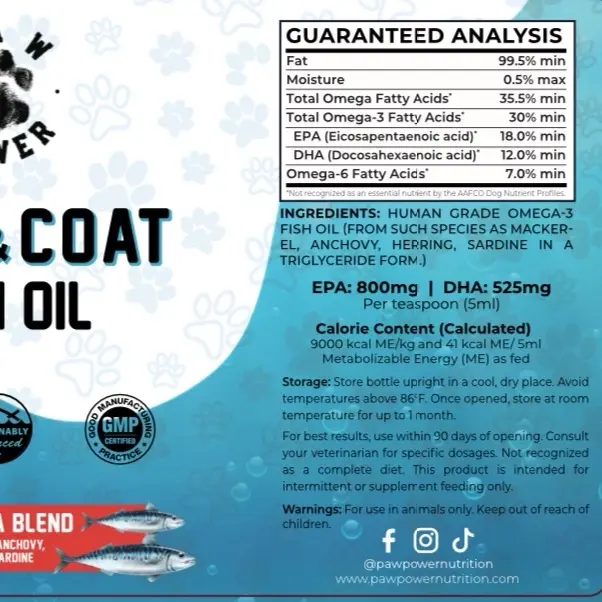 * Inflammation Reduction: The omega-3 fatty acids in the fish oil can help to reduce inflammation and improve the overall health of the skin and coat.