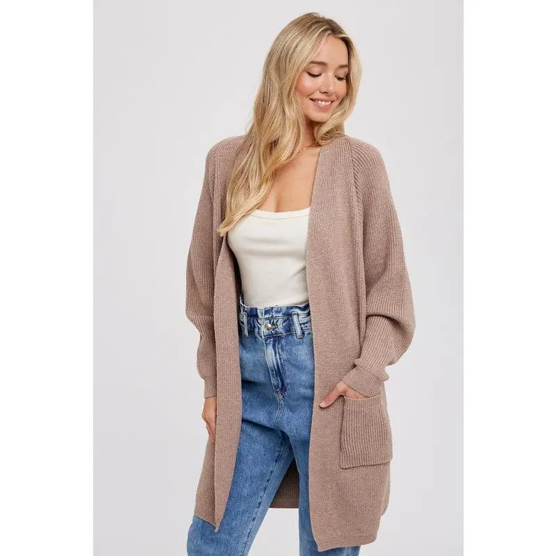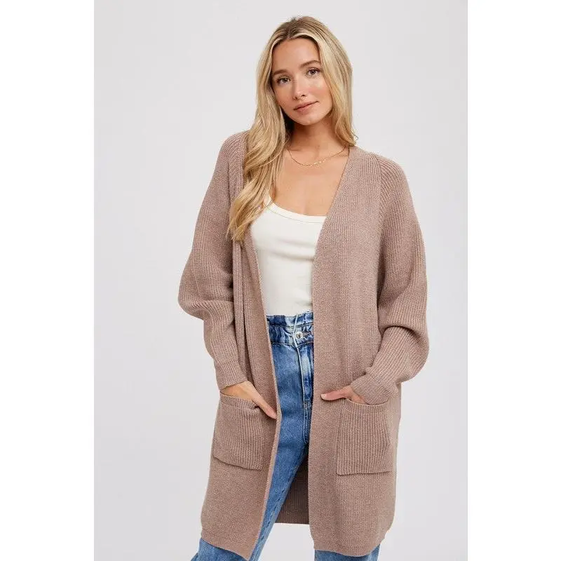 This cardigan boasts a relaxed fit, a cocoon silhouette, and batwing sleeves, making it a stylish yet comfortable addition to your wardrobe. Plus, with an open front and front patch pockets, it's the perfect combination of fashion and functionality.