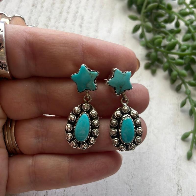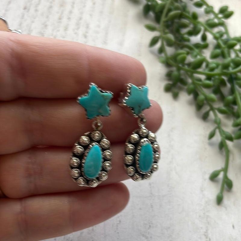 5. Handmade Star Sterling Silver & Turquoise Dangle Earrings Signed Nizhoni