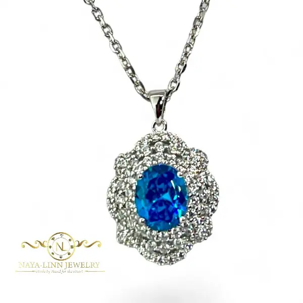 Parker necklace is crafted in rhodium over sterling silver, featuring a central oval-cut stone embraced by layers of surrounding small stones. This necklace not only captures the elegance of oval cut but also pays homage to vintage aesthetics, where layers play a crucial role in enhancing the inner beauty of the central stone. The layers of small gemstones mirror life's layers of experiences, where each layer contributes to enhancing the overall beauty of life's journey.