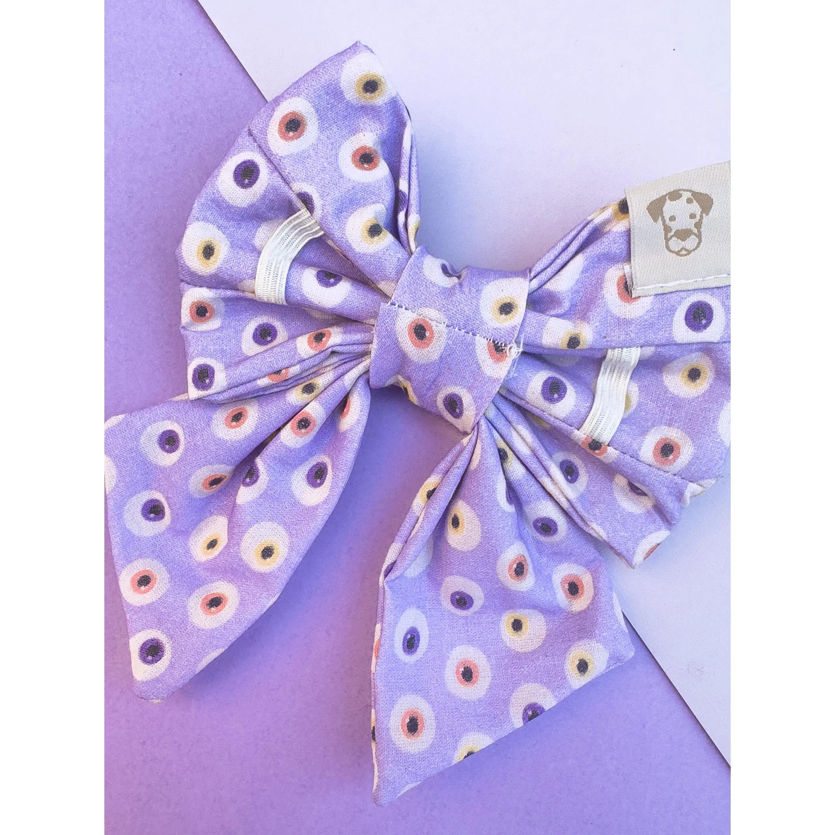 Get your furry friend ready for Halloween with the Dog Sailor Bow Halloween Eyes from our Autumn Collection. This adorable slip-on collar bow features a spooky and fun design perfect for the fall season. Available in two sizes, this bow will fit dogs of all shapes and sizes.