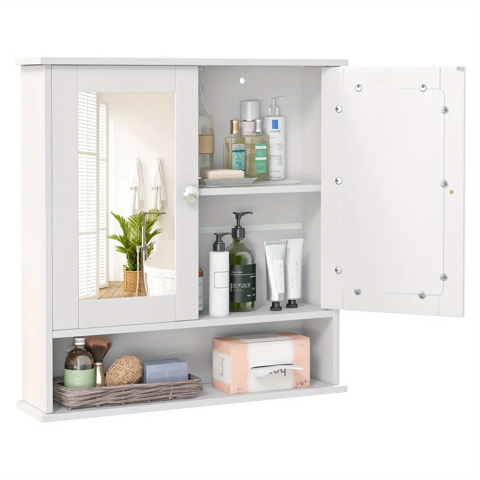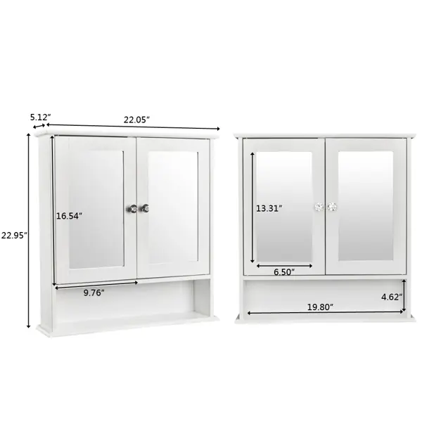Upgrade your bathroom with the Lifezeal Wall Cabinet. It features 2 mirrored doors and an adjustable shelf. Perfect for hanging medicine and storing essentials. Choose from gray, white, brown, or black. Made from MDF, it measures 22 x 5 x 23 inches (L x W x H) or 55.88 x 12.7 x 58.42 cm. Weighs 13.5 lbs or 6.12 kg. Ideal for saving space in your bathroom.