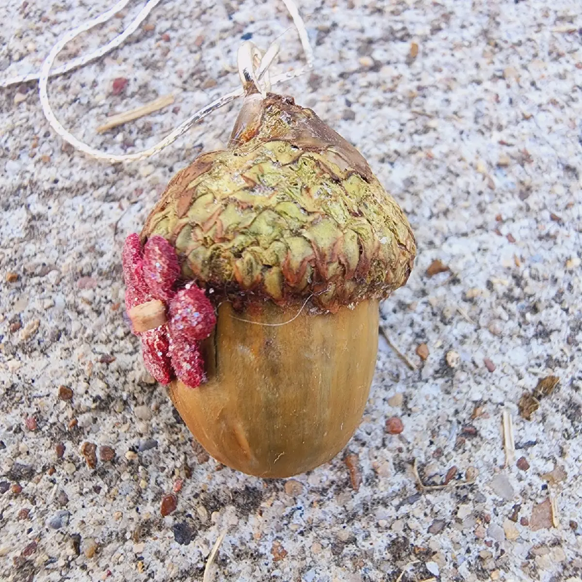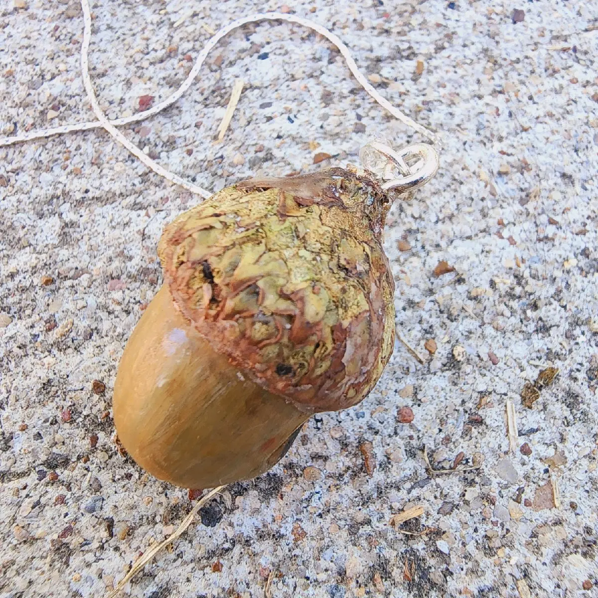 This handmade necklace is a unique and one-of-a-kind piece of jewelry that is sure to catch the eye of anyone who sees it. The necklace features a real acorn that has been used as a pendant, adding a natural and rustic touch to the overall design. The acorn is a symbol of growth and abundance, making this necklace a meaningful and symbolic piece of jewelry.