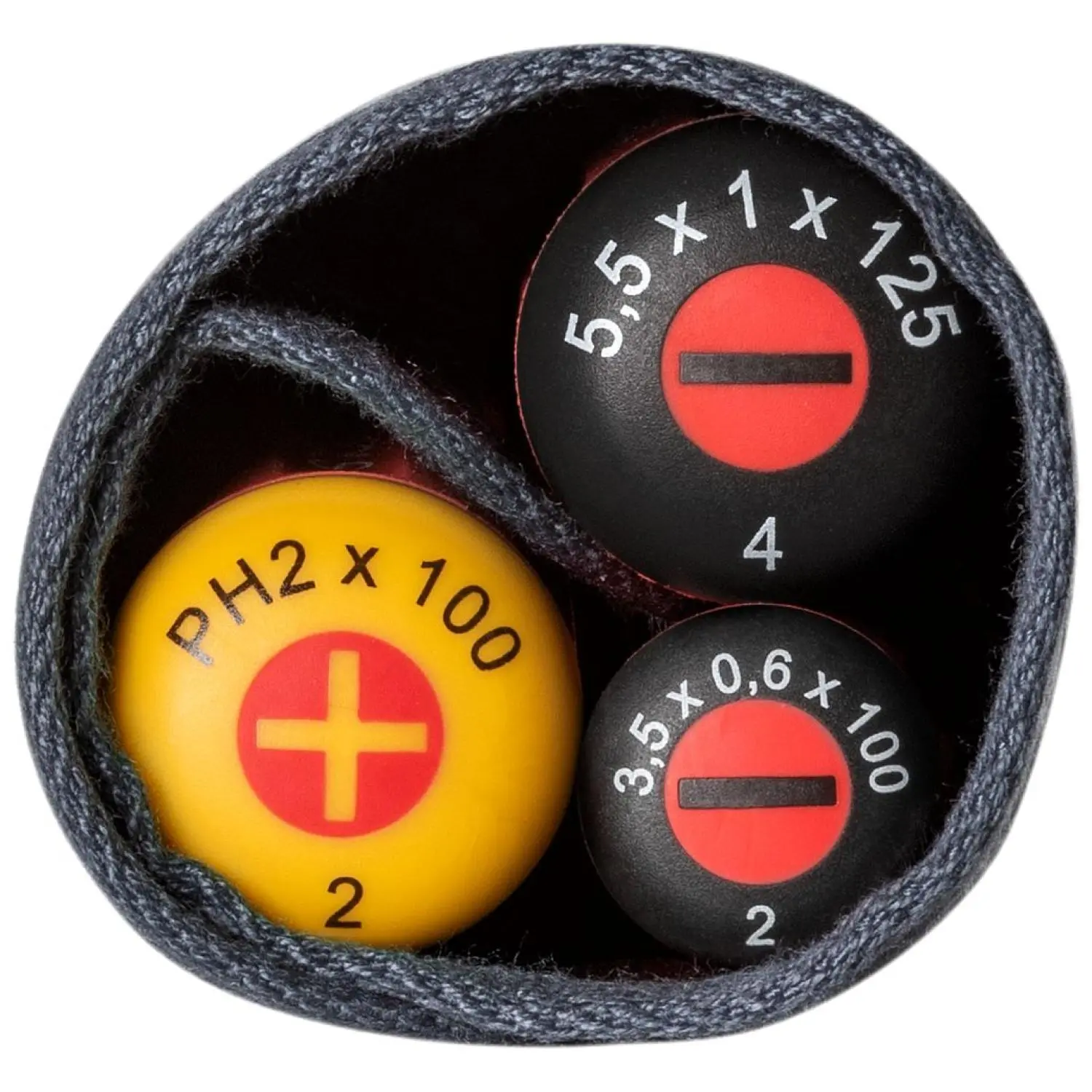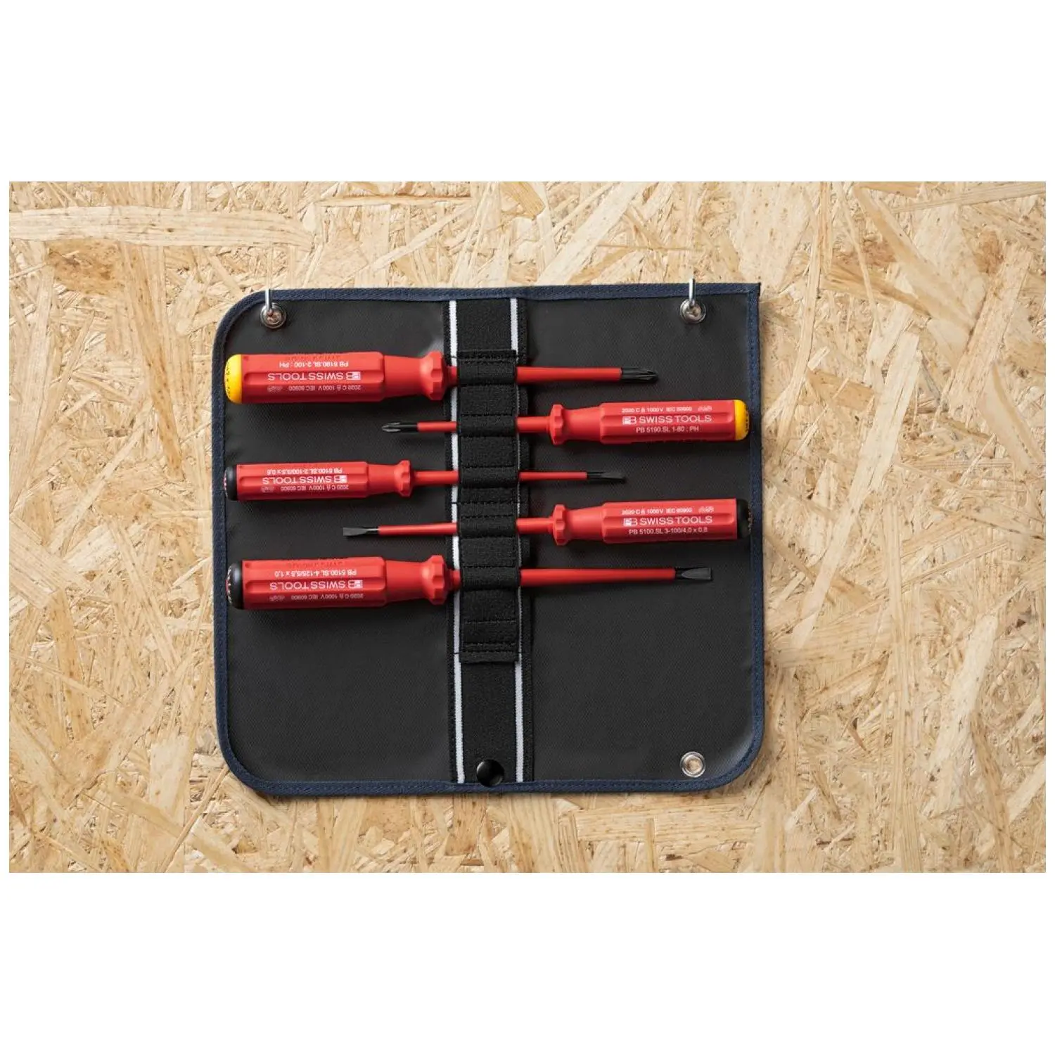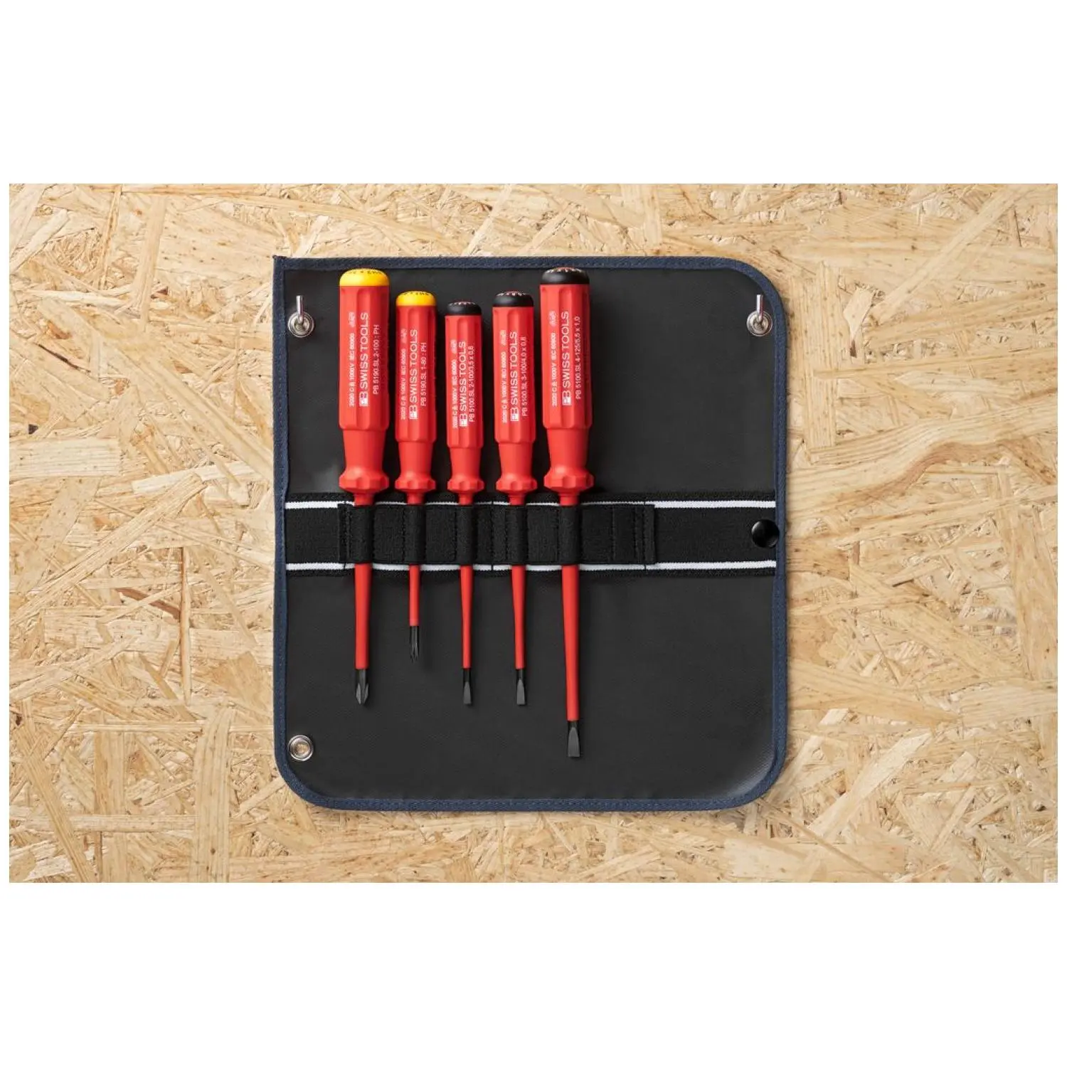 PB Swiss PB 5542.SU SL GY Screwdriver Set Slotted/Phillips in Roll-Up Case with Classic VDE Handle, 5 Pcs