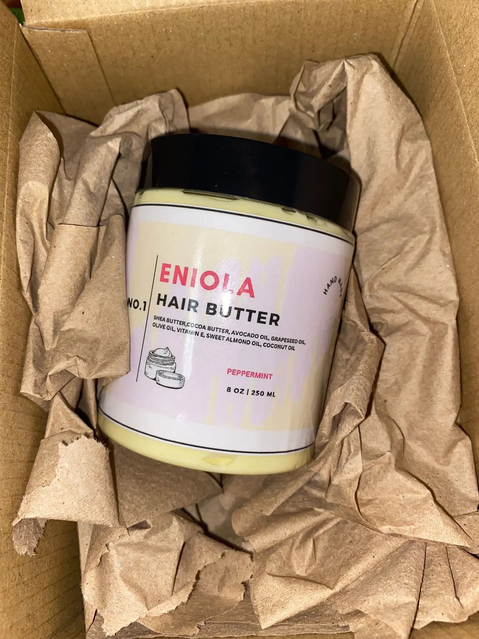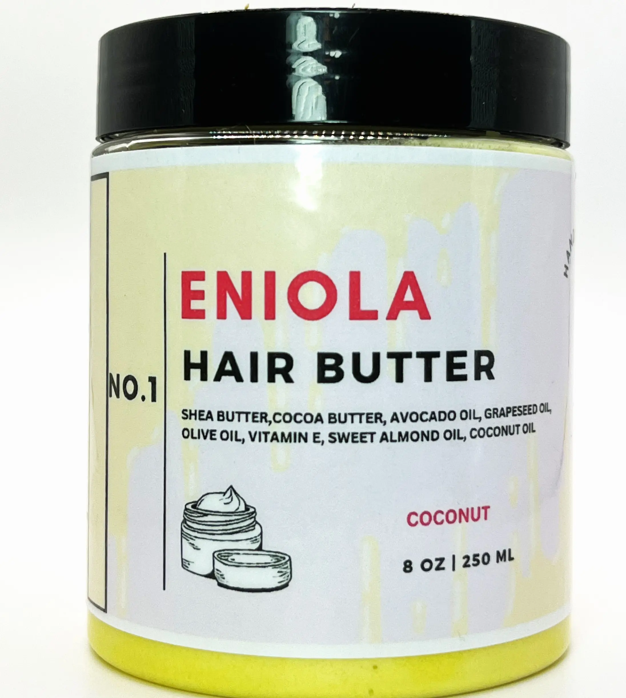 Eniola Hair Butter! Packed with nature's finest ingredients like Shea Butter, Avocado Oil, Grapeseed Oil, and Vitamin E, this hair butter works wonders on all hair types.