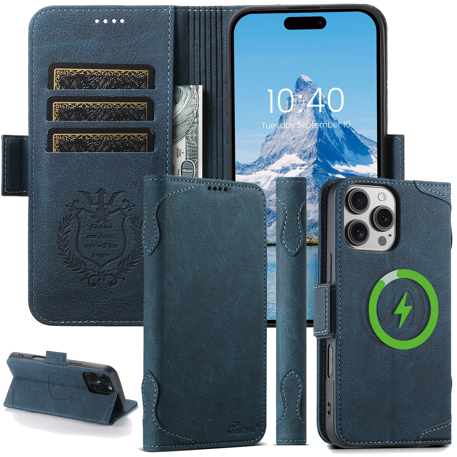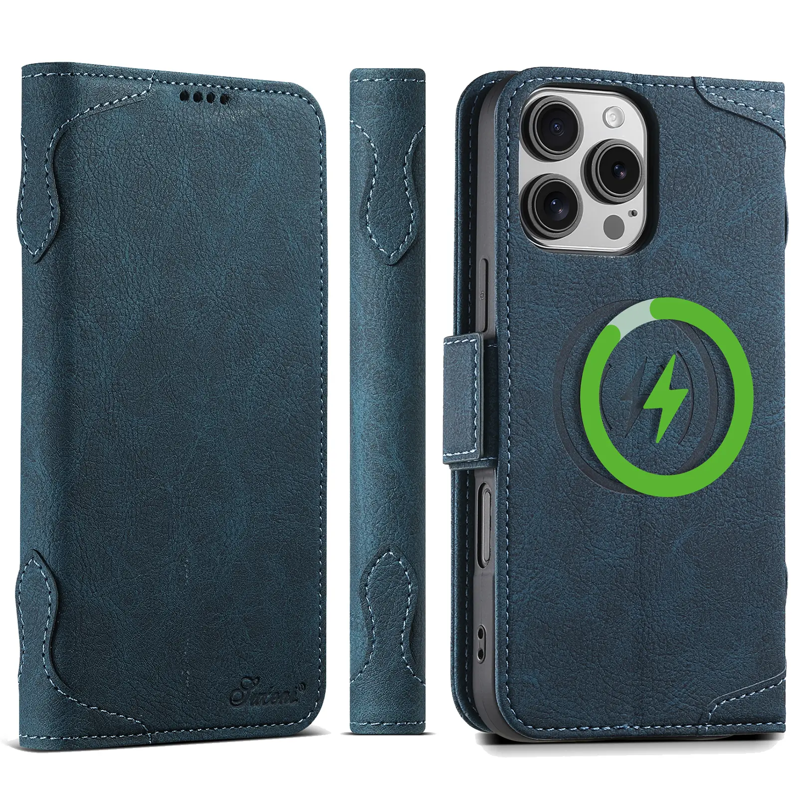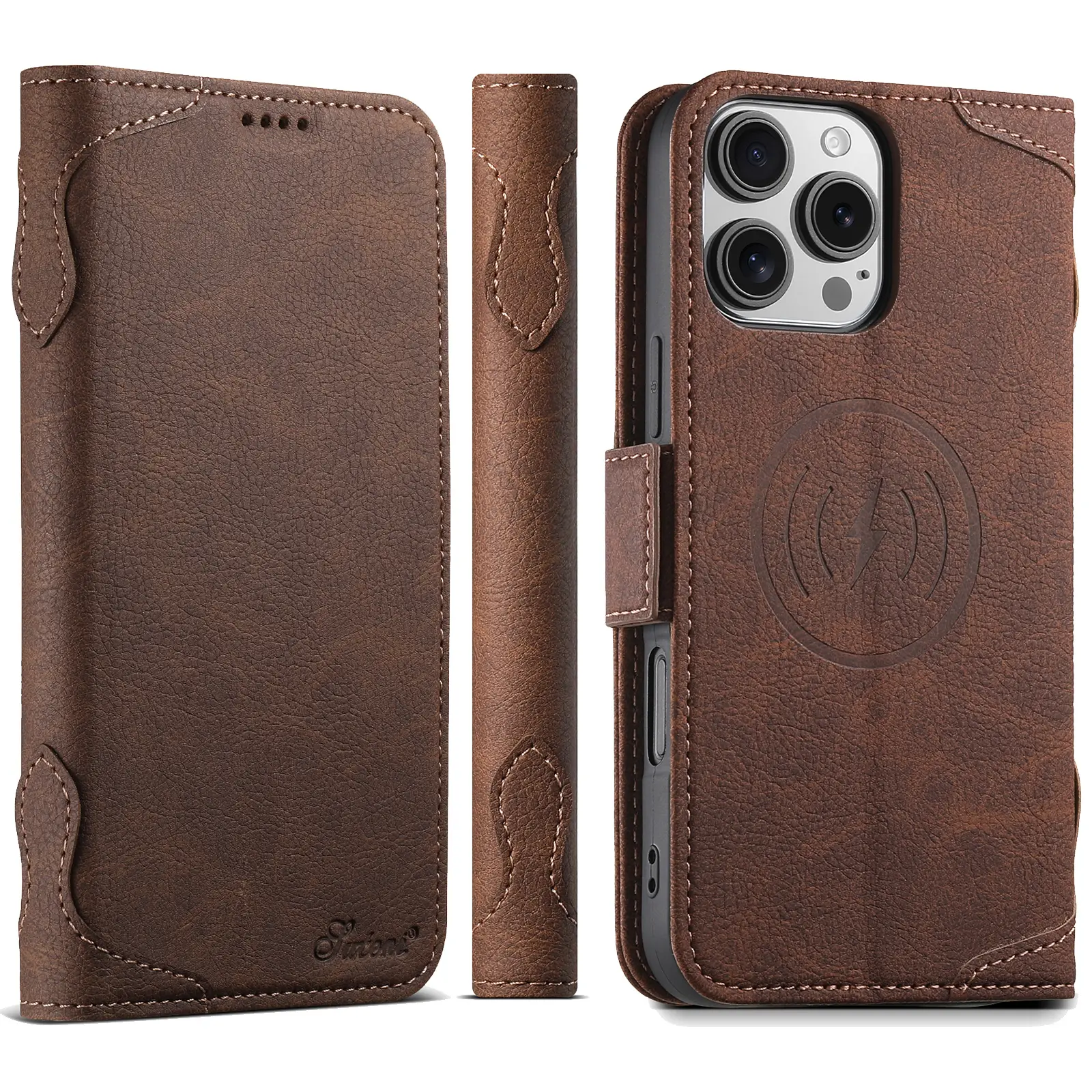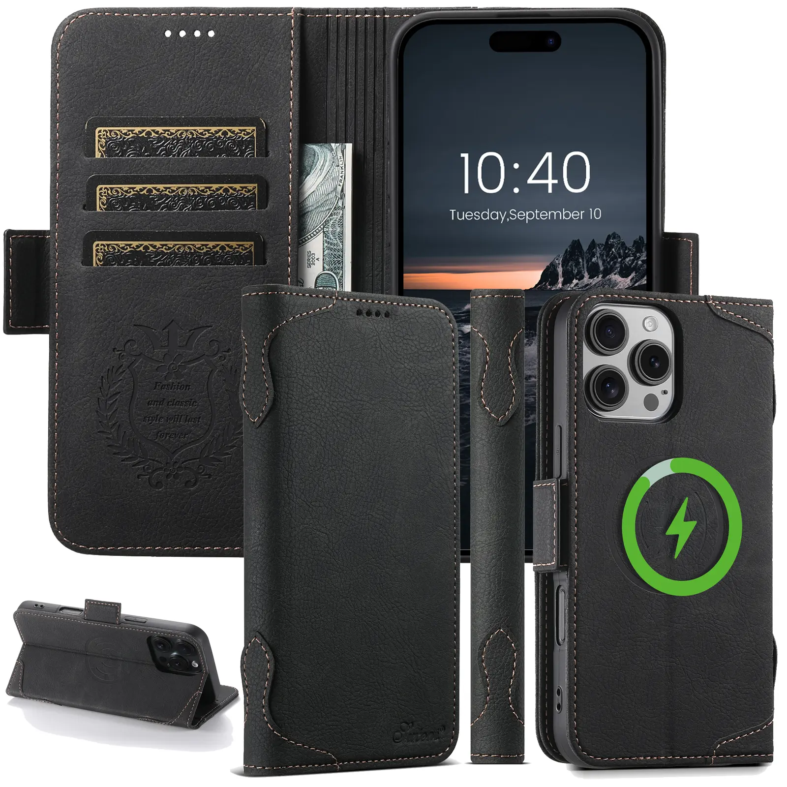 Ever fumble with your phone while charging or watching videos? The SUTENI wireless charging faux leather wallet case is here to simplify your life. Designed for iPhone 12 through 17 Pro Max models, this sleek case combines style and function. Its magnetic button closure keeps your phone snug and secure, while the faux leather finish adds a touch of classic elegance that lasts. Need to catch up on your favorite show or video chat hands-free? Just flip the case into a stand and enjoy. Plus, it supports wireless charging and MagSafe, so no need to remove the case when powering up. Whether you're gifting it to relatives, friends, or elders, this case suits everyone with its unisex design. Inside the box, you'll get the faux leather magnetic flip cover case ready to protect and impress. Upgrade your phone experience with a case that works as hard as you do—grab yours today and enjoy convenience and style all in one!