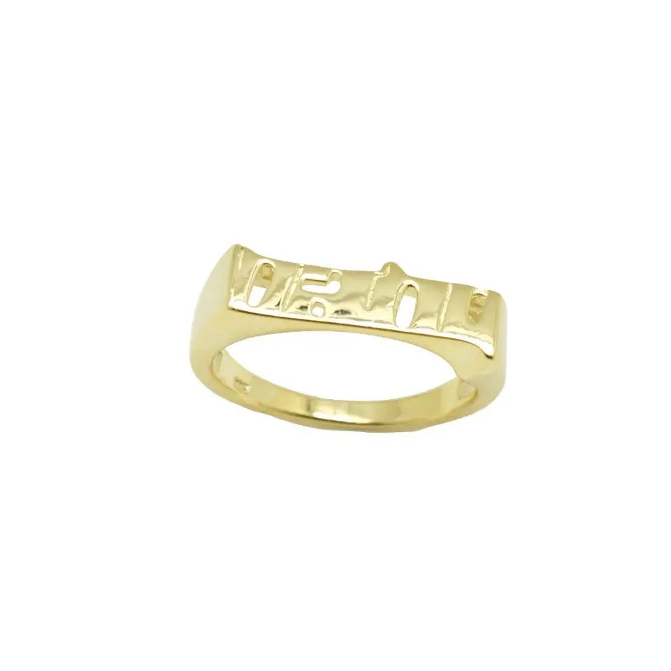 The Elegant style of the Baby Ring is perfect for formal occasions or as a gift for someone special. The Rectangle Flat Top Wording Ring design is unique and eye-catching, making it a great addition to any jewelry collection. The available color for the ring is Gold, which is a classic and timeless color that can match with any outfit.